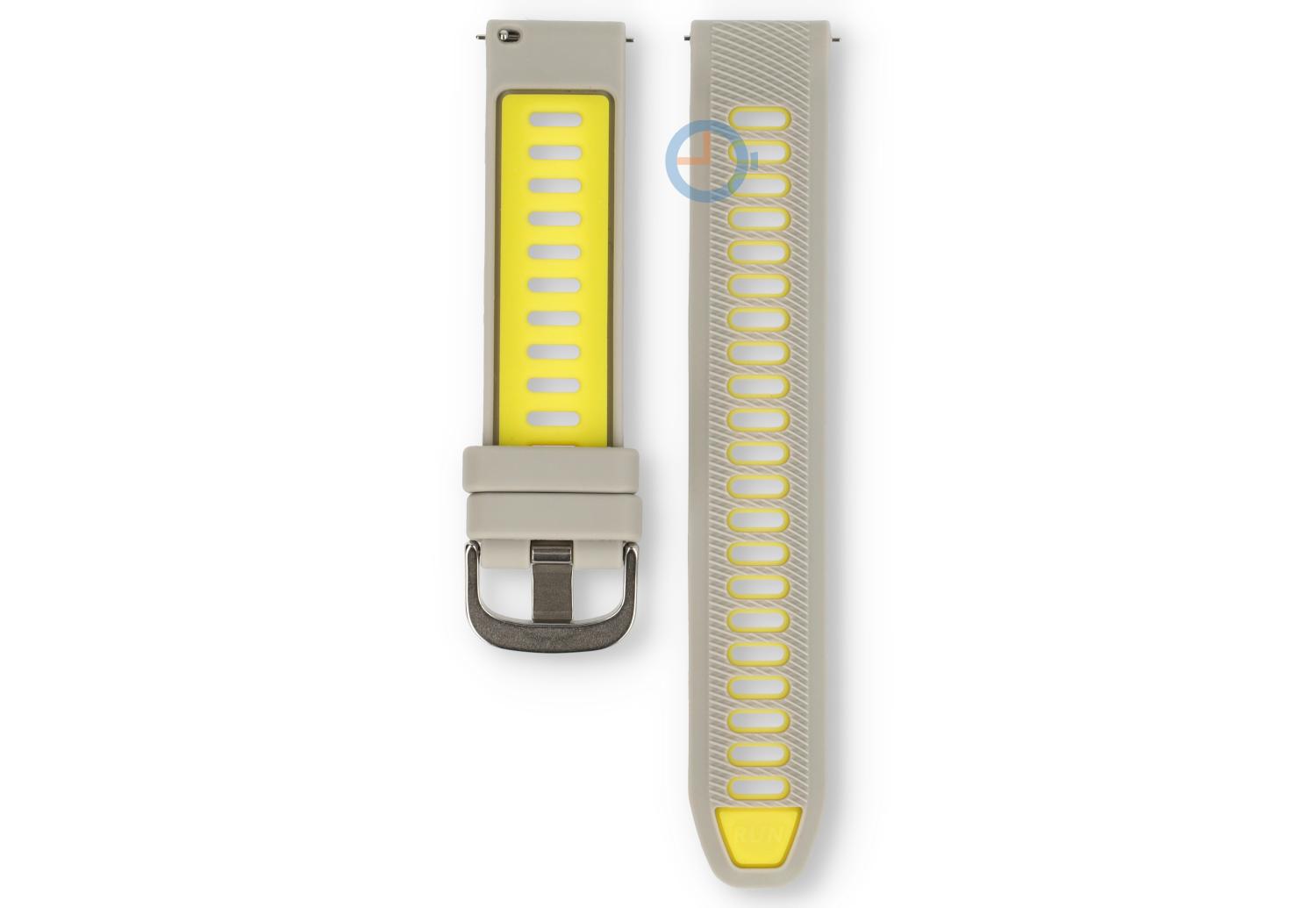 Horlogeband voor Huawei GT 3 (20mm) - grijs geel. Eenvoudig duocolor horlogebandje in nieuwe kleuren. Deze band is speciaal ontwikkelt voor hardlopers.