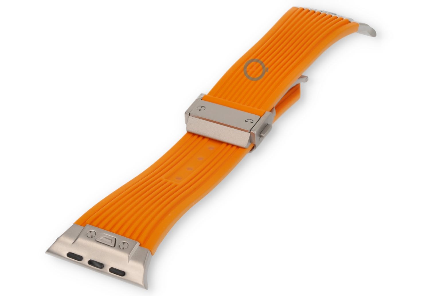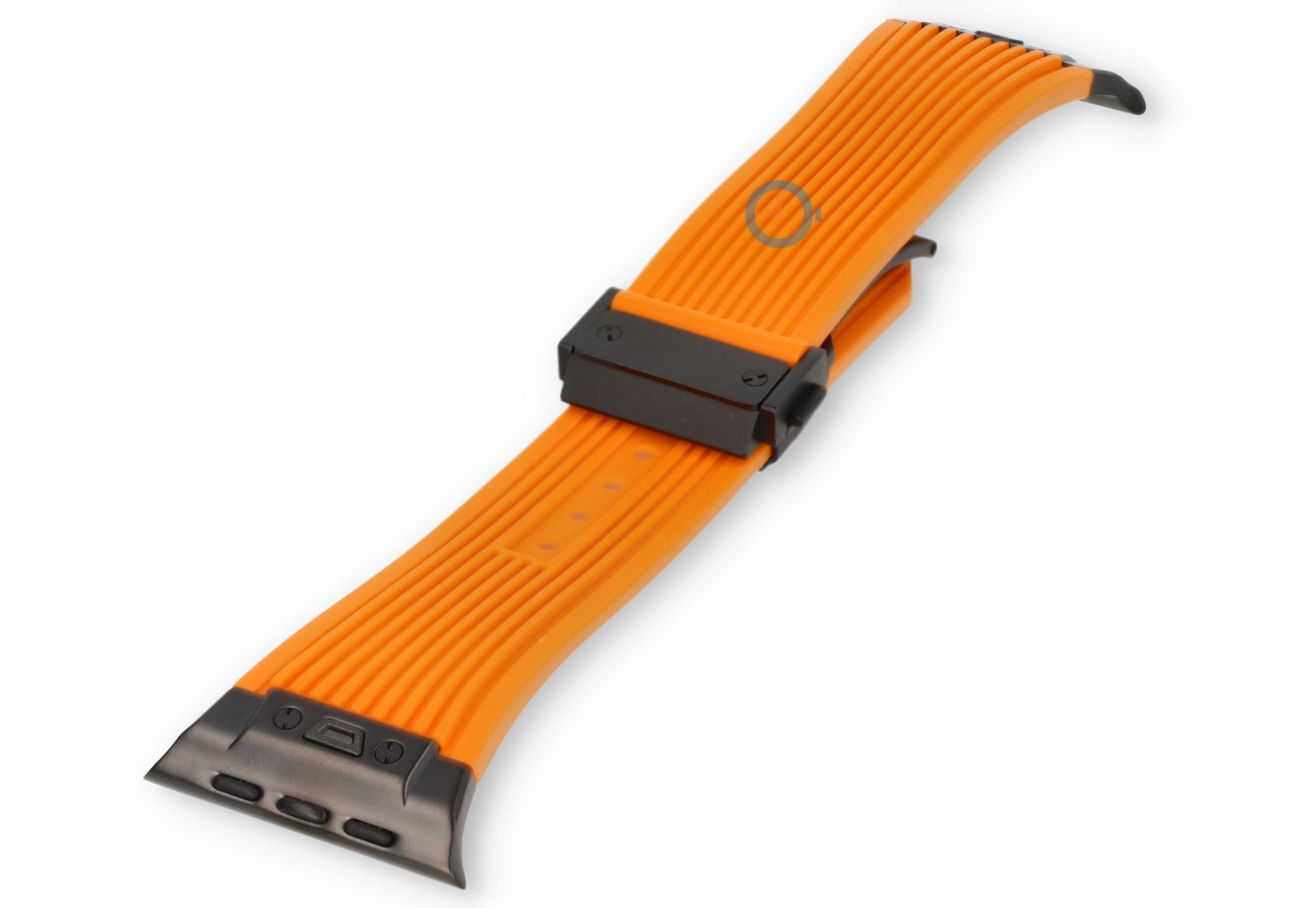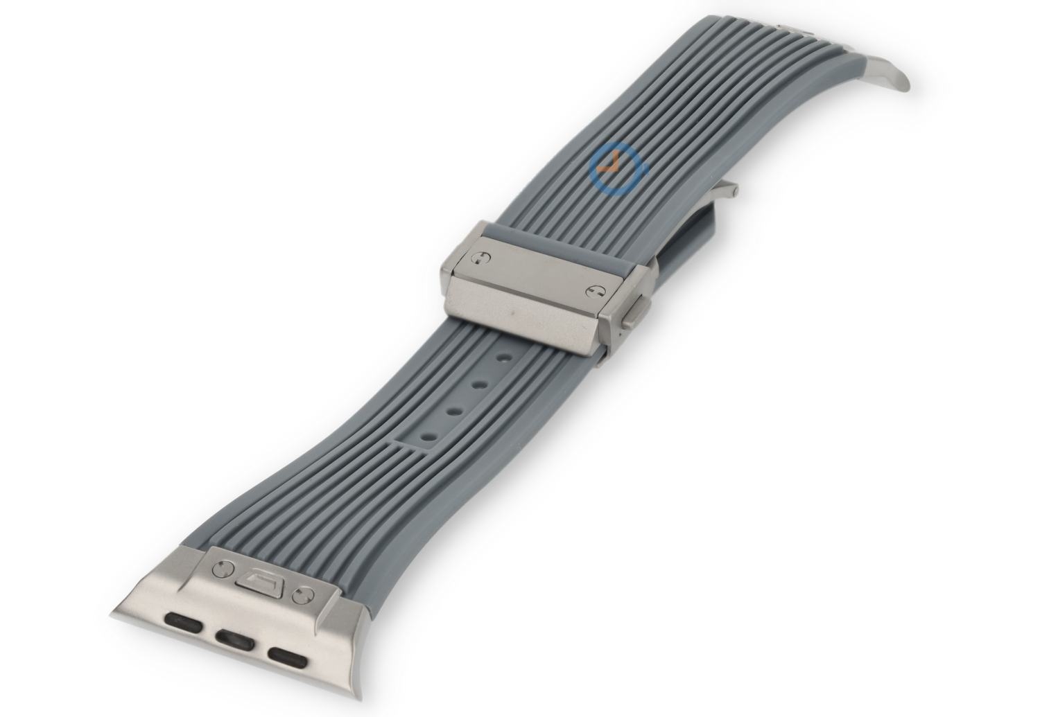 Hublot staat bekend het gebruik van geschroefde details in de horlogeband. De zilverkleurige adapter van dit Apple watch bandje loopt direct over in het design van Hublot en heeft een mooie doorloop naar het rubber. Een betere afwerking krijg je niet!