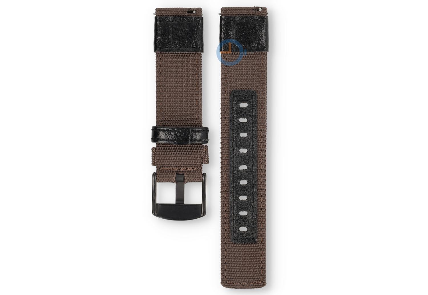 Hybride horlogeband - nylon/leer - 20mm bruin