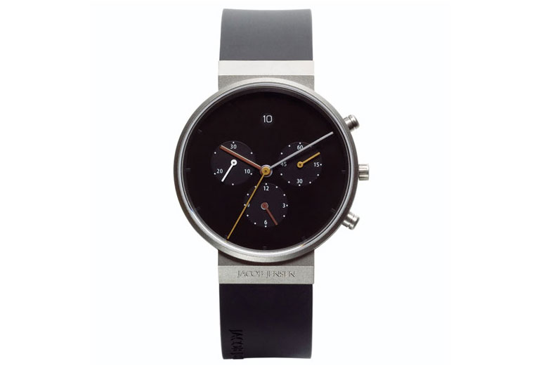 Originele Jacob Jensen Dimenstion JJ603 horlogeband. De horlogeband is origineel en is gemaakt van echt leder. De band is 18mm breed in de kleur zwart. Jacob Jensen horlogebanden worden geleverd inclusief sluiting.