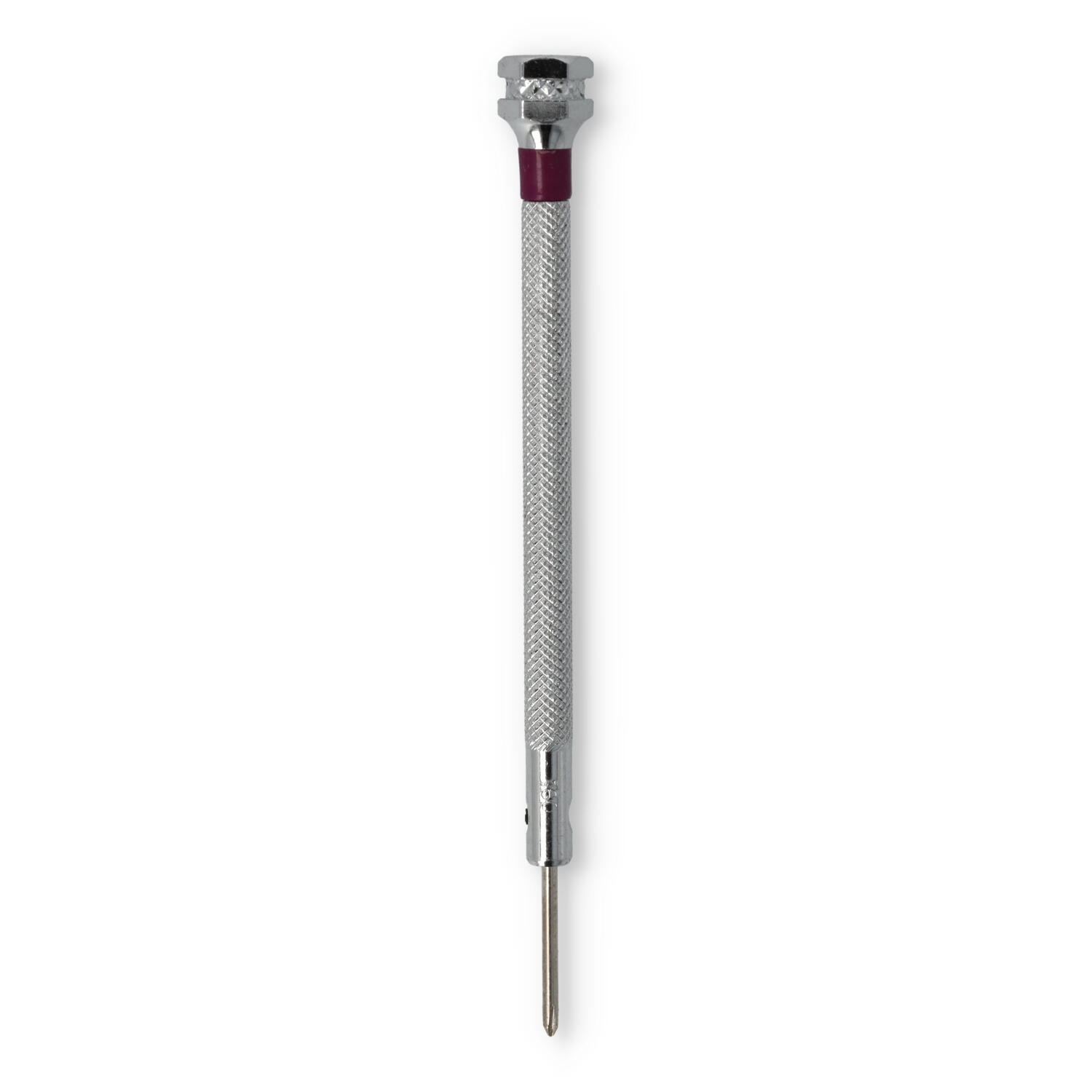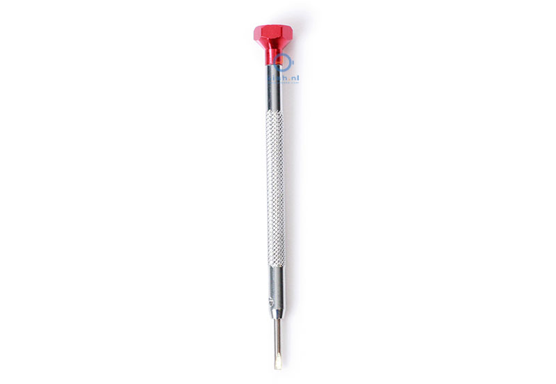 Zwarte platte schroevendraaier. Deze schroevendraaier is gemaakt uit sterk staal en heeft een grote roterende kop voor gebruiksgemak en ergonomische bediening. Ieder precisiewerkje is met deze kleine schroevendraaier zo geklaard.