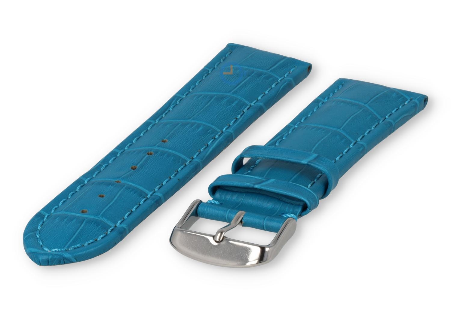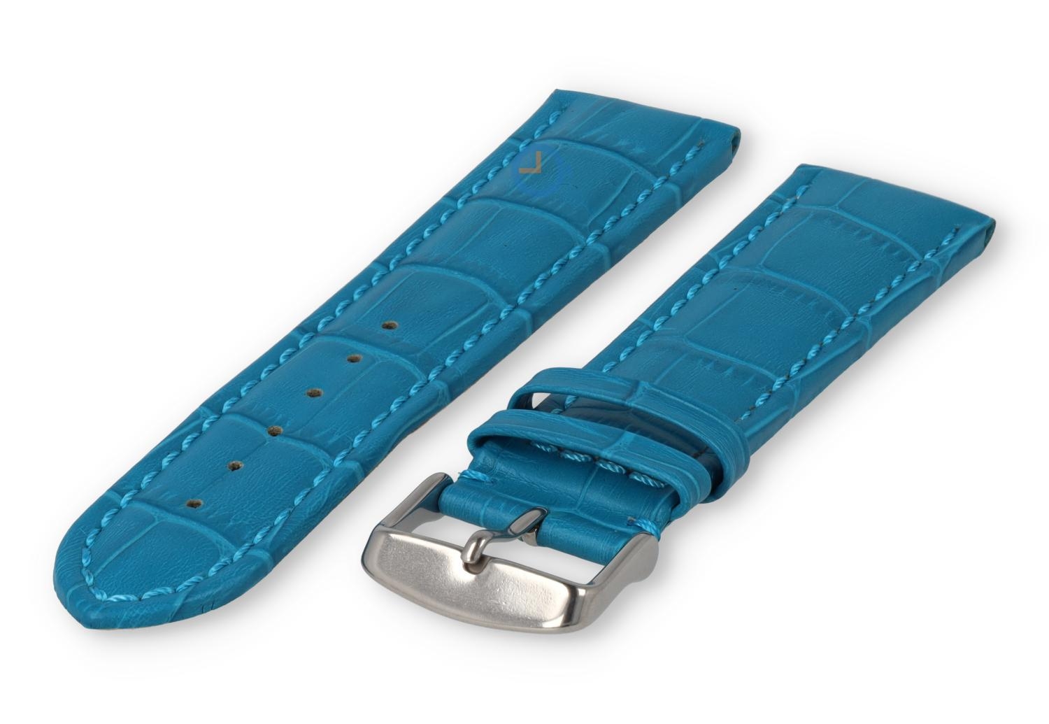 Kalfsleer horlogeband met croco - 28mm - turquoise. Een mooie en degelijke horlogeband van leer met crocoprint. Het materiaal is echt kalfsleer met een kleurtje. Wat deze horlogeband helemaal afmaakt is de meegekleurde stiksel. Hierdoor oogt het horlogebandje nog luxer en maakt deze jouw horloge helemaal compleet.