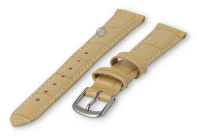 Leren bandje met krokoprint - 12mm - zand. Een effen gekleurd bandje met luxe croco-print voor d? klassieke look. Maak je horloge weer compleet met deze betaalbare horlogeband. Deze horlogeband van echt leer is 12mm breed en loopt terug naar 10mm. Je ontvangt dit leren bandje inclusief de roestvrijstalen gespsluiting in zilverkleur.