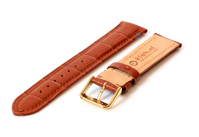 Luxe horlogeband speciaal ontwikkeld voor Festina - 22mm leer met crocoprint - kleur: lichtbruin. Het leer en de stiksels zijn effen gekleurd voor die echte Festina look. Deze crocoleren band is 22mm breed en heeft een rechte, universele aanzet. Je plaatst dit horlogebandje met pushpinnen eenvoudig zelf aan je horloge. De sluiting is geelgoud om perfect te matchen bij jouw Festina horloge, maar wil je je originele sluiting behouden? Dan kun je je originele sluiting overzetten. Deze is namelijk ook bevestigd met een pushpin.