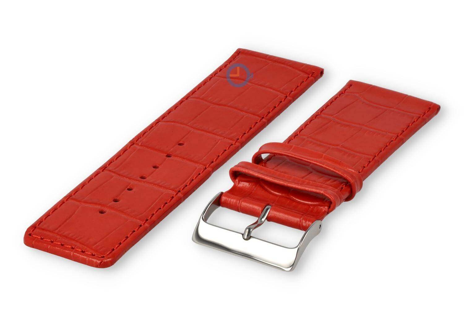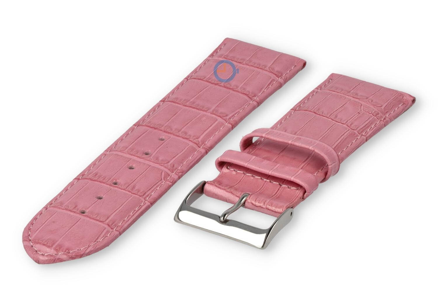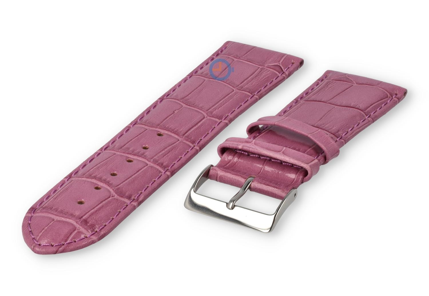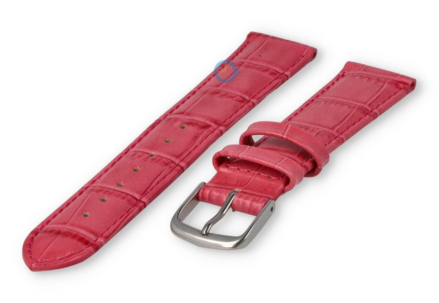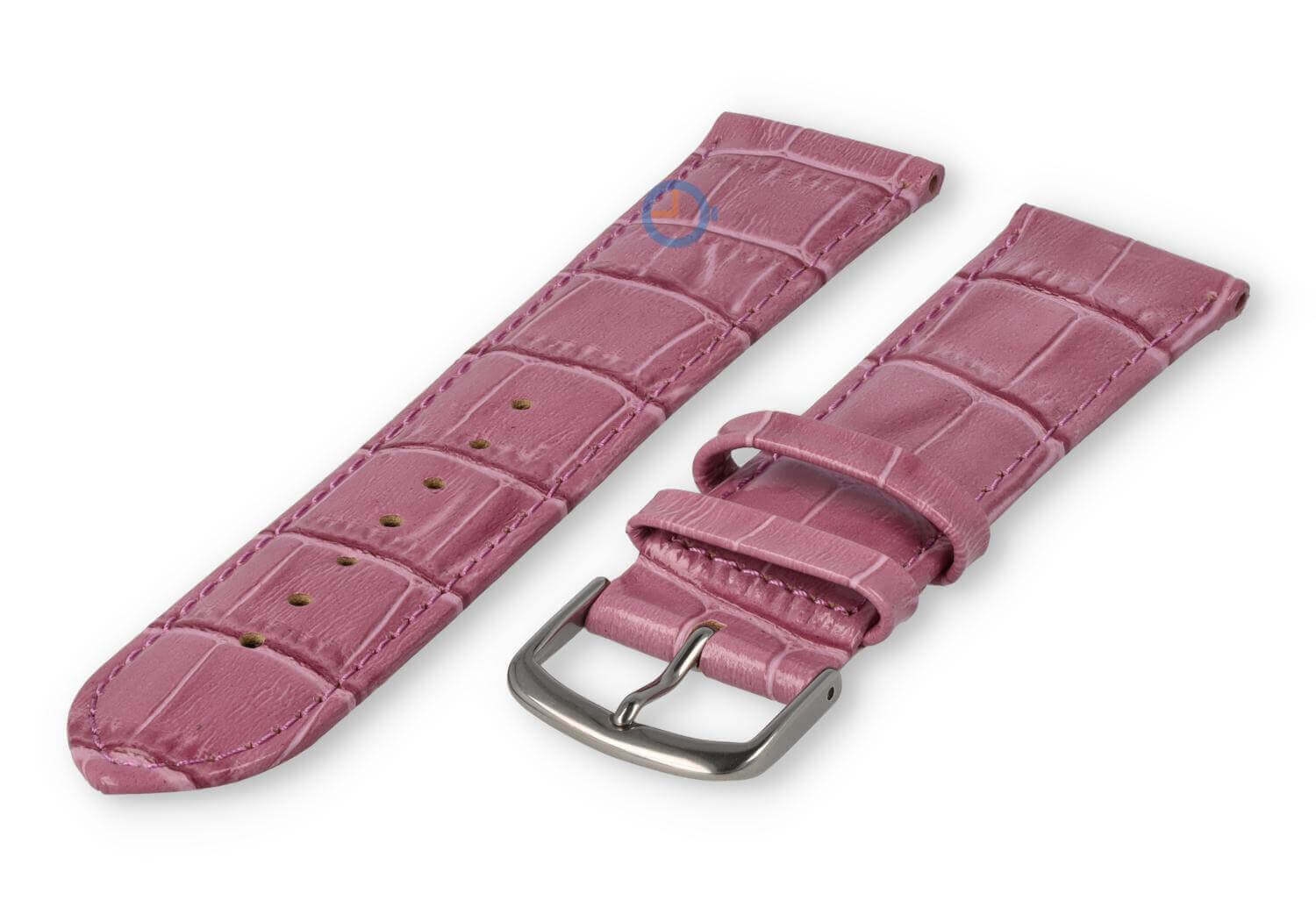 Luxe croco horlogeband - 30mm - roze. Extra brede horlogeband voor grotere horloges. Een verfijnde, licht opgevulde horlogeband die jouw horloge weer als nieuw maakt. Deze horlogeband van echt leer is 30mm breed en loopt terug naar 28mm. Je ontvangt dit leren bandje inclusief de roestvrijstalen gespsluiting in zilverkleur.