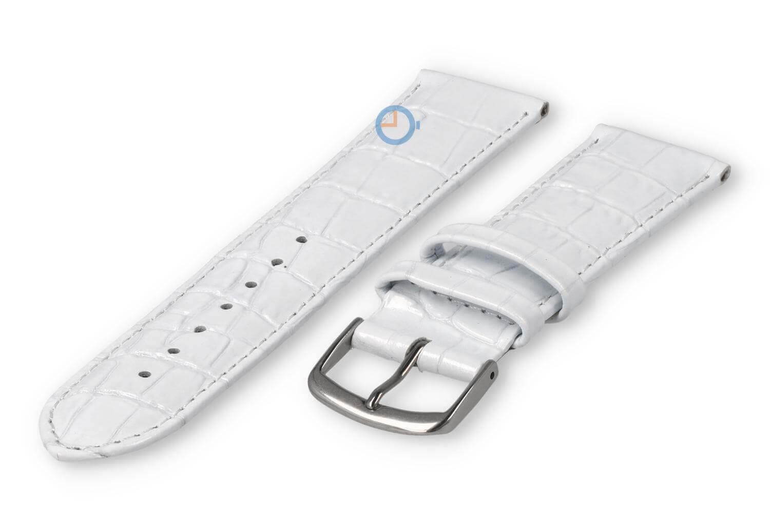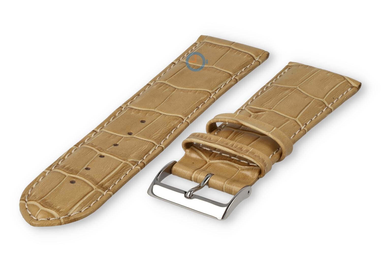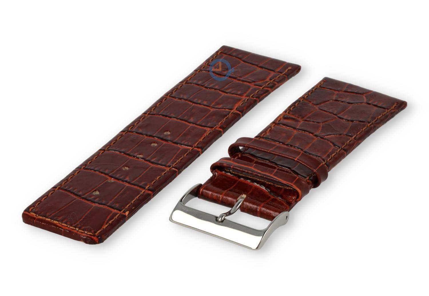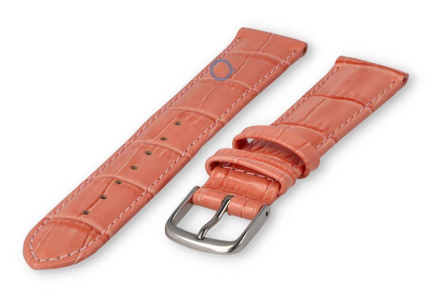 Luxe croco horlogeband - 30mm - roze. Extra brede horlogeband voor grotere horloges. Een verfijnde, licht opgevulde horlogeband die jouw horloge weer als nieuw maakt. Deze horlogeband van echt leer is 30mm breed en loopt terug naar 28mm. Je ontvangt dit leren bandje inclusief de roestvrijstalen gespsluiting in zilverkleur.