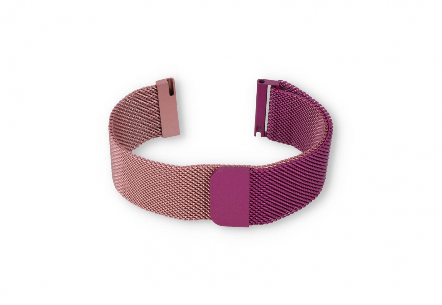 Roze milanese horlogeband 22mm. Wil jij een echte eyecatcher om jouw pols. Kies dan voor een horlogeband met kleurverloop. Met twee kleuren fleur jij jouw horloge helemaal op. Een milanese horlogeband is een echte klassieker, en nu ook in een modern, kleurrijk jasje verkrijgbaar. De horlogebandjes zijn gemaakt van gevlochten staal en zijn veel lichter dan een stalen schakelband.