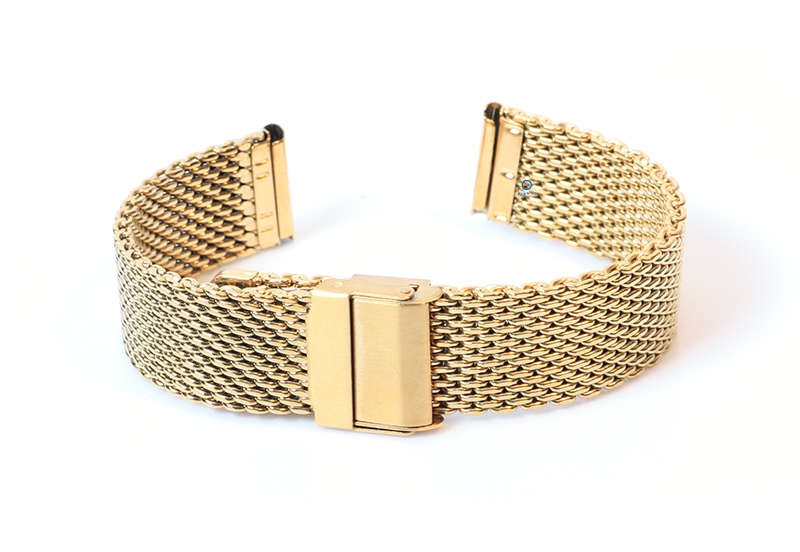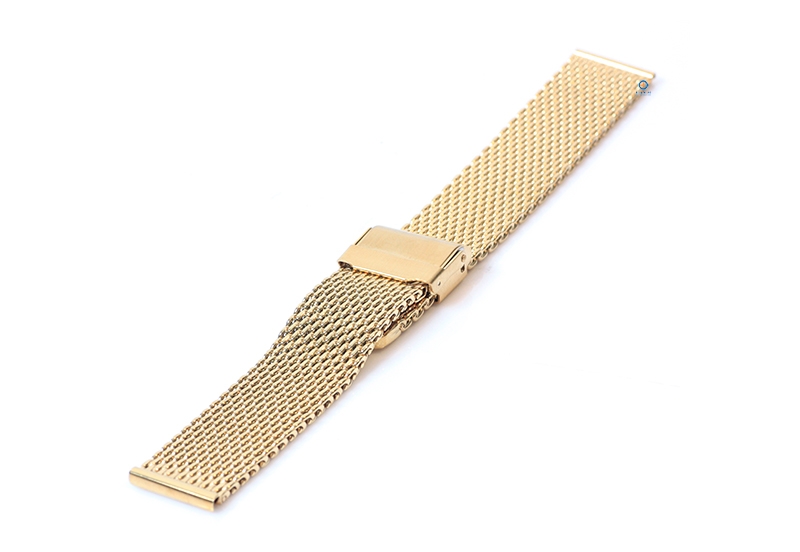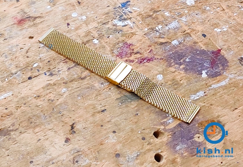 Universele horlogeband 22mm goud. Deze stalen horlogeband geeft jouw horloge een stoere, maar toch classy look. Het gevlochten staal is niet alleen super sterk, maar ook veel flexibeler dan een schakelhorlogeband. De robuuste horlogeband heeft een verstelbare sluiting met een extra veiligheid systeem. De sluiting kan je eenvoudig zelf verstellen, zo is het horlogebandje passend voor bijna elke polsmaat.
