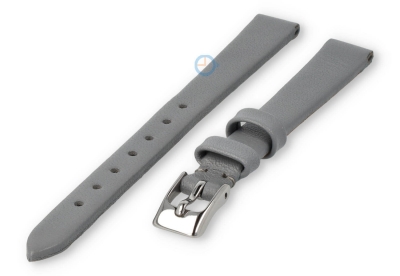 Naadloze en gladde horlogeband 10mm - lichtgrijs. Een smalle horlogeband zonder stiksel. Deze naadloze horlogeband is slechts 10mm breed en wordt bevestigd met springbars. De band is gemaakt van echt kalfsleer en is erg soepel voor een ultiem draagcomfort. Je sluit het horlogebandje met een subtiele gespsluiting die wordt meegeleverd.