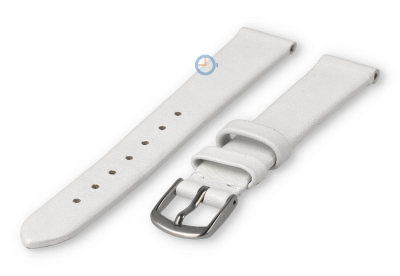 Naadloze en gladde horlogeband 12mm - wit. Een korte en smalle horlogeband zonder stiksels. Deze naadloze horlogeband is slechts 12mm breed en wordt bevestigd met springbars. De band is gemaakt van echt kalfsleer en is erg soepel voor een ultiem draagcomfort. Je sluit het horlogebandje met een subtiele gespsluiting die wordt meegeleverd.