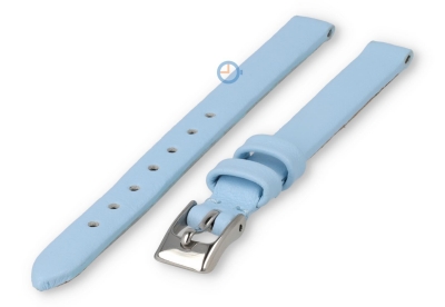 Naadloze en gladde horlogeband 8mm - ijsblauw. Extra smal horlogebandje zonder naden. Deze naadloze horlogeband is slechts 8mm breed en wordt bevestigd met springbars. De band is gemaakt van echt kalfsleer en is erg soepel voor een ultiem draagcomfort. Je sluit het horlogebandje met een subtiele gespsluiting die wordt meegeleverd.