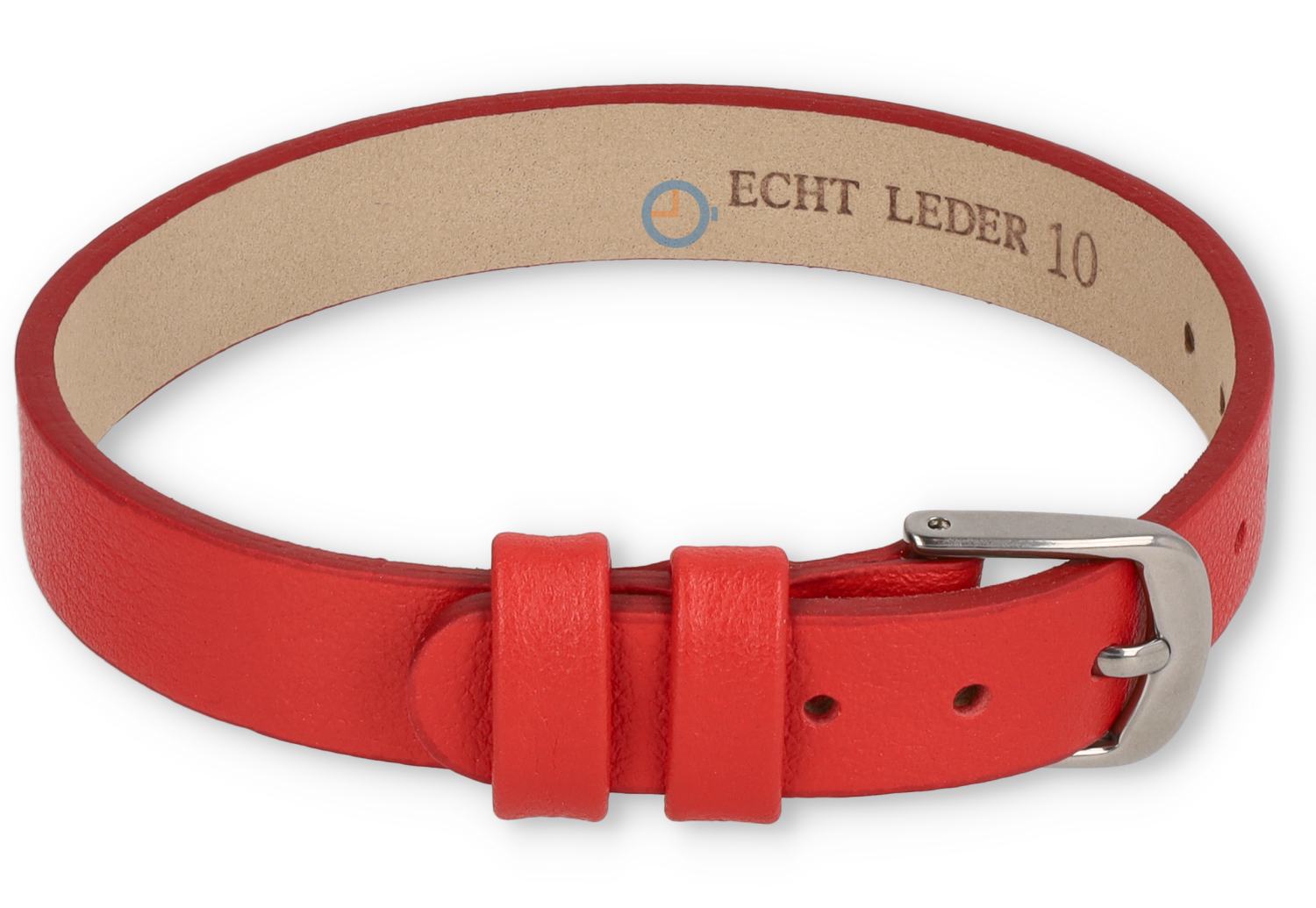 One-piece leren horlogeband - 10mm - rood