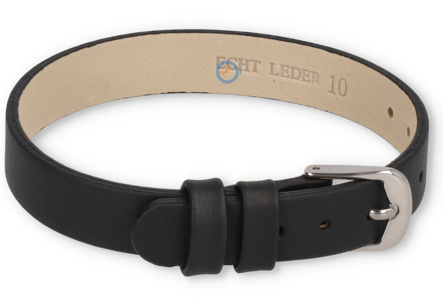 One-piece leren horlogeband - 10mm - zwart