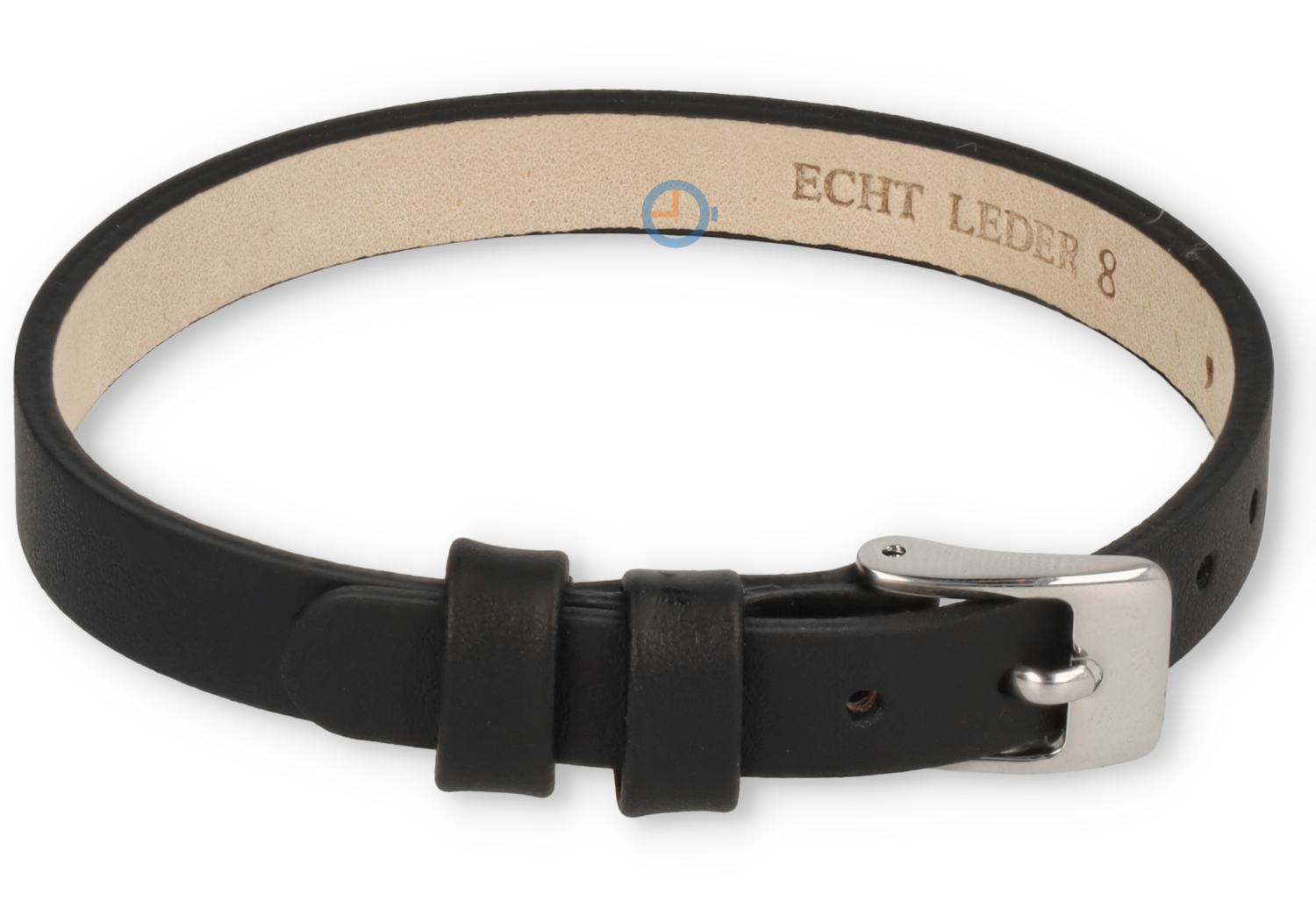 One-piece leren horlogeband - 8mm - zwart