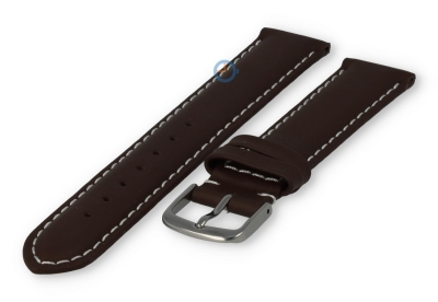 17mm horlogeband van leer - donkerbruin. Dit horlogebandje heeft een oneven maat: 17mm. Het leer is mat gekleurd en heeft een stoer wit stiksel. De gesp is in hoogglans staal en wordt gemonteerd meegeleverd.