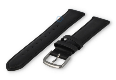 17mm horlogeband van leer - zwart. Dit horlogebandje heeft een oneven maat: 17mm. Het leer is mat gekleurd en heeft een stoer Tone-in-Tone stiksel. De gesp is in hoogglans staal en wordt gemonteerd meegeleverd.