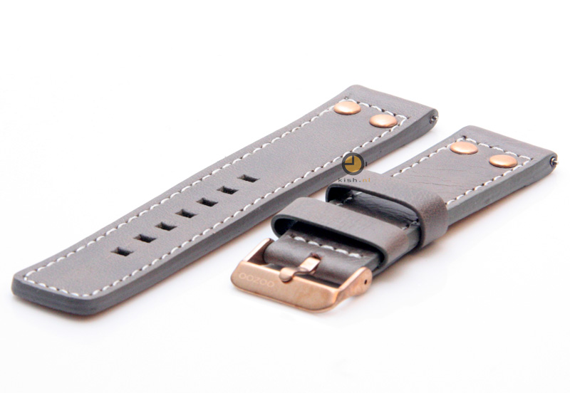 Originele Oozoo horlogeband voor een Oozoo horloge. Deze Oozoo horlogeband is gemaakt van zilver leer en is 22mm breed. Eenvoudig thuis te vervangen met behulp van een spring bar removal tool.