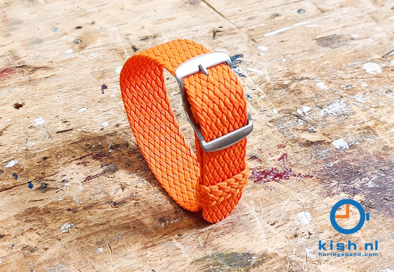 Perlon is een ijzersterk kunststofvezel die verwant is aan nylon. Dit materiaal wordt o.a. verwerkt in parachutes en touw voor de luchtmacht en marine. Het gevlochten horlogebandje kan goed tegen een stootje en is waterbestendig. De randen van het horlogebandje zijn gesealed met een laser, waardoor het horlogebandje geen rafelige randen heeft.