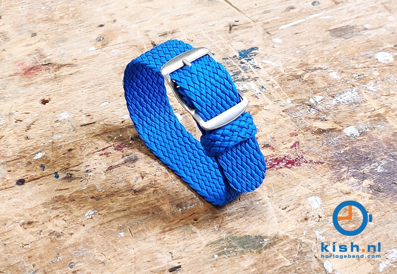 Perlon is een ijzersterk kunststofvezel die verwant is aan nylon. Dit materiaal wordt o.a. verwerkt in parachutes en touw voor de luchtmacht en marine. Het gevlochten horlogebandje kan goed tegen een stootje en is waterbestendig. De randen van het horlogebandje zijn gesealed met een laser, waardoor het horlogebandje geen rafelige randen heeft.