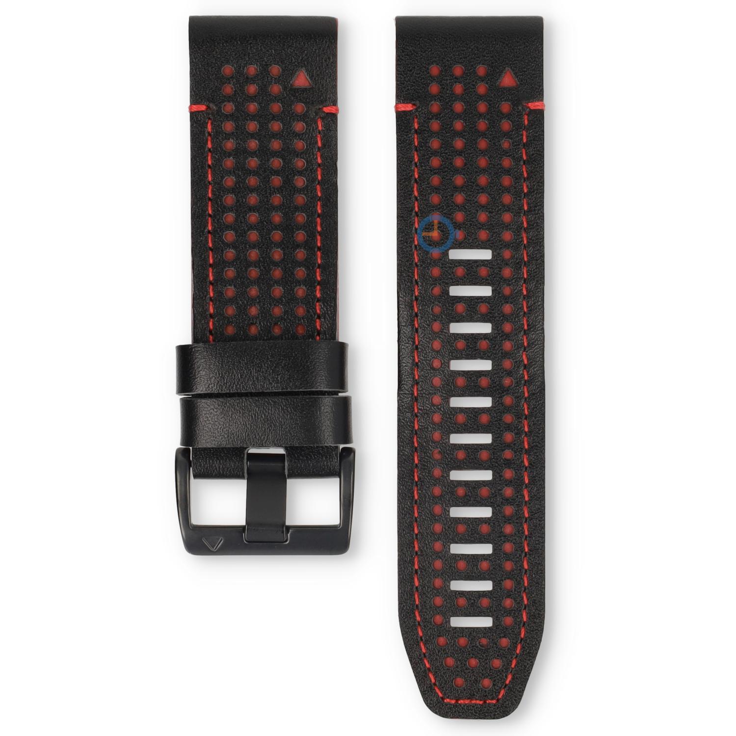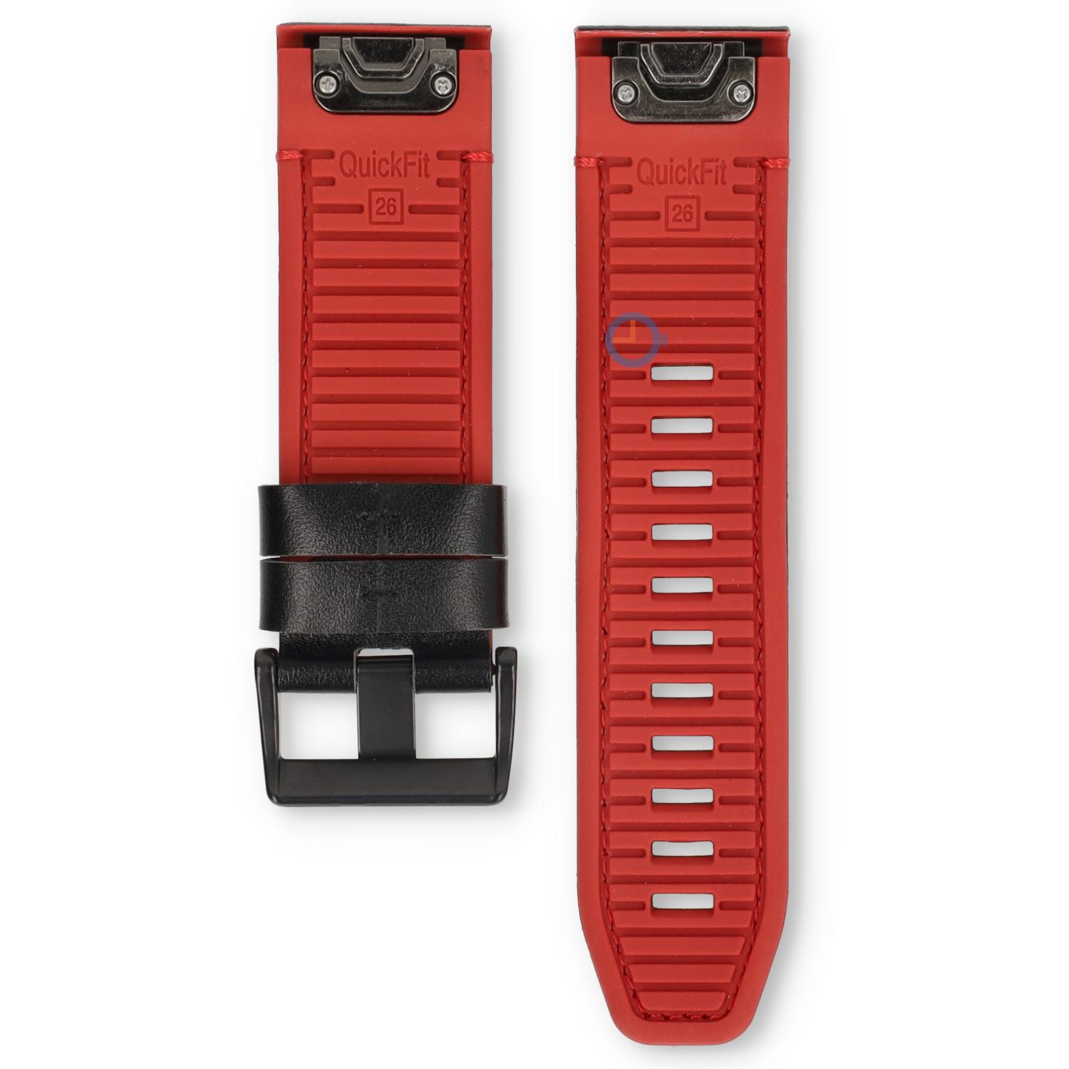 Premium 26mm bandje - leer/siliconen - zwart/rood