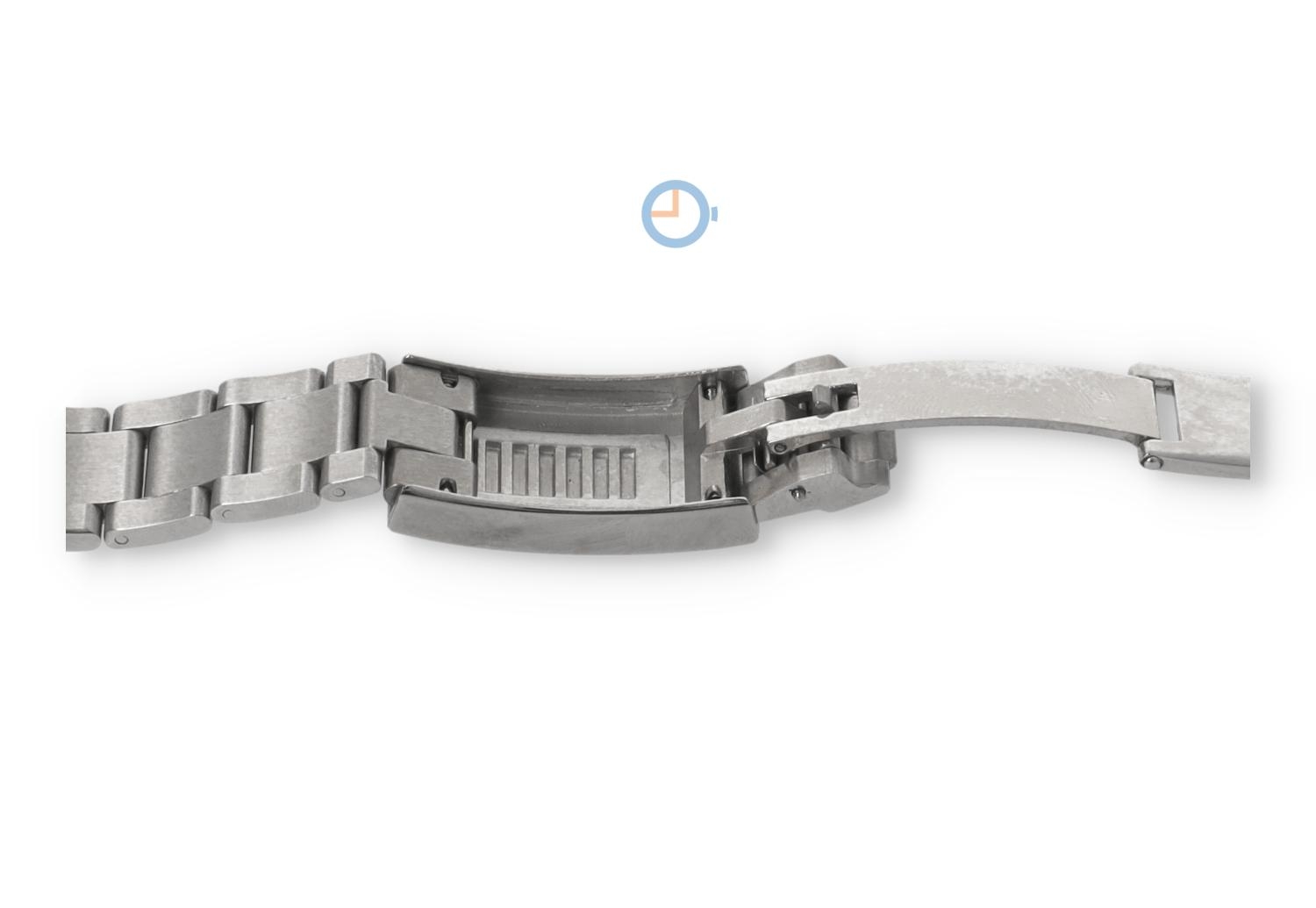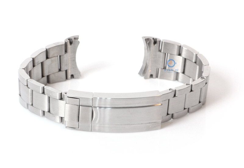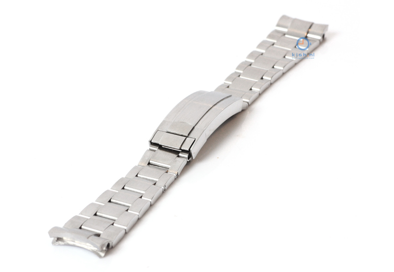 Rolex style horlogeband 21mm staal zilver. Deze zilveren edelstalen horlogeband heeft een ronde aanzet, zodat het bandje perfect aansluit op de horlogekast.