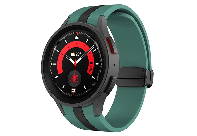 Samsung Galaxy Watch 5 bandje - groen/rood. Originele Samsung horlogeband te duur of te saai? Bestel dan onze Premium horlogeband voor jouw Samsung Galaxy Watch 5. Qua materiaal en kwaliteit net zo goed als het origineel.