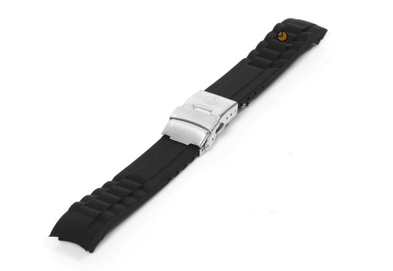 Deze zwarte siliconen horlogeband heeft een ronde aanzet, zodat het bandje perfect aansluit op de horlogekast. De band wordt geleverd inclusief roestvrij stalen vouwsluiting. Bestel gelijk een set springbars mee en de springbar removal tool voor het nog sneller vervangen van je horlogeband.