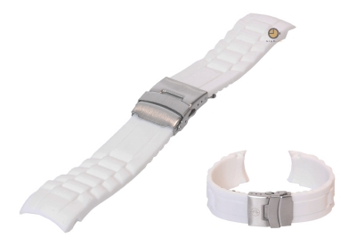 Deze wit siliconen horlogeband heeft een ronde aanzet, zodat het bandje perfect aansluit op de horlogekast. De band wordt geleverd inclusief roestvrij stalen vouwsluiting. Bestel gelijk een set springbars mee en de springbar removal tool voor het nog sneller vervangen van je horlogeband.