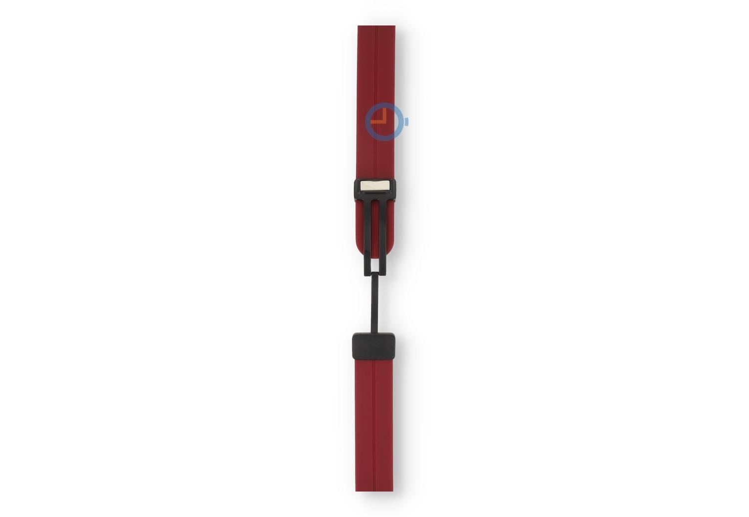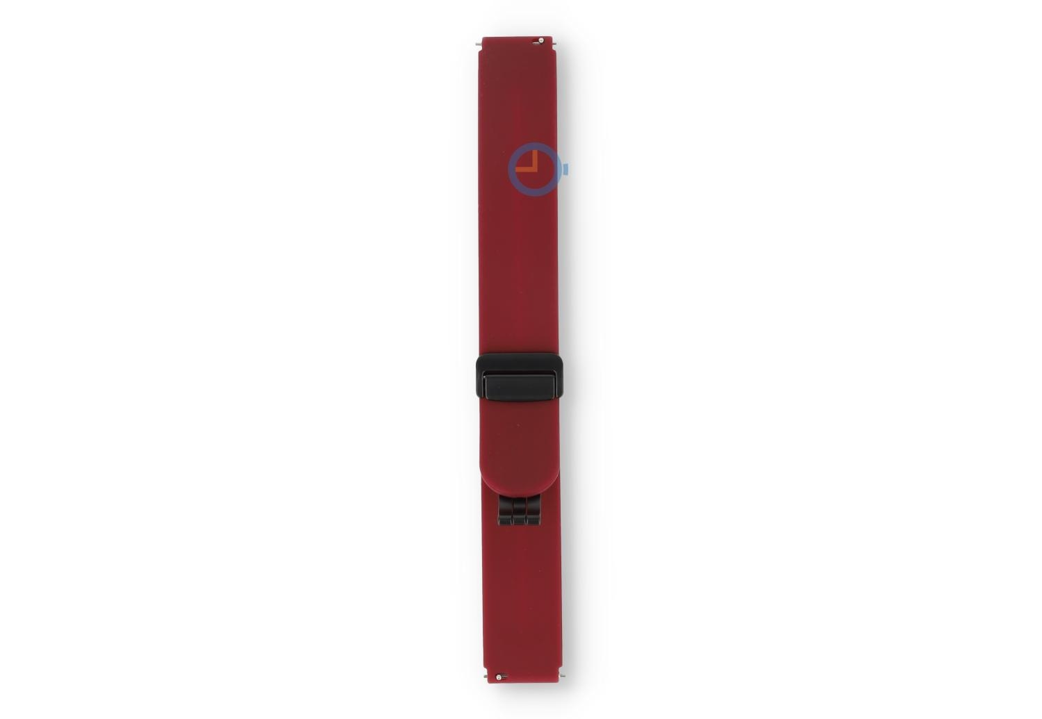 Snelwissel bandje - 16mm - Bordeaux. Find the perfect match en kies uit tal van nieuwe kleuren bandjes. Dit horlogebandje van 16mm, gemaakt van soepel en duurzaam siliconen, maakt je horloge direct sportproof op een stijlvolle manier. Perfect voor sportieve activiteiten en dagelijks gebruik, het bandje draag je op verschillende maten - ideaal bandje voor de dunne pols. Omdat het horlogebandje een veilige, magneetsluiting heeft, heb je geen tools meer nodig om de maat te bepalen. Niet alleen makkelijk, maar ook snel.