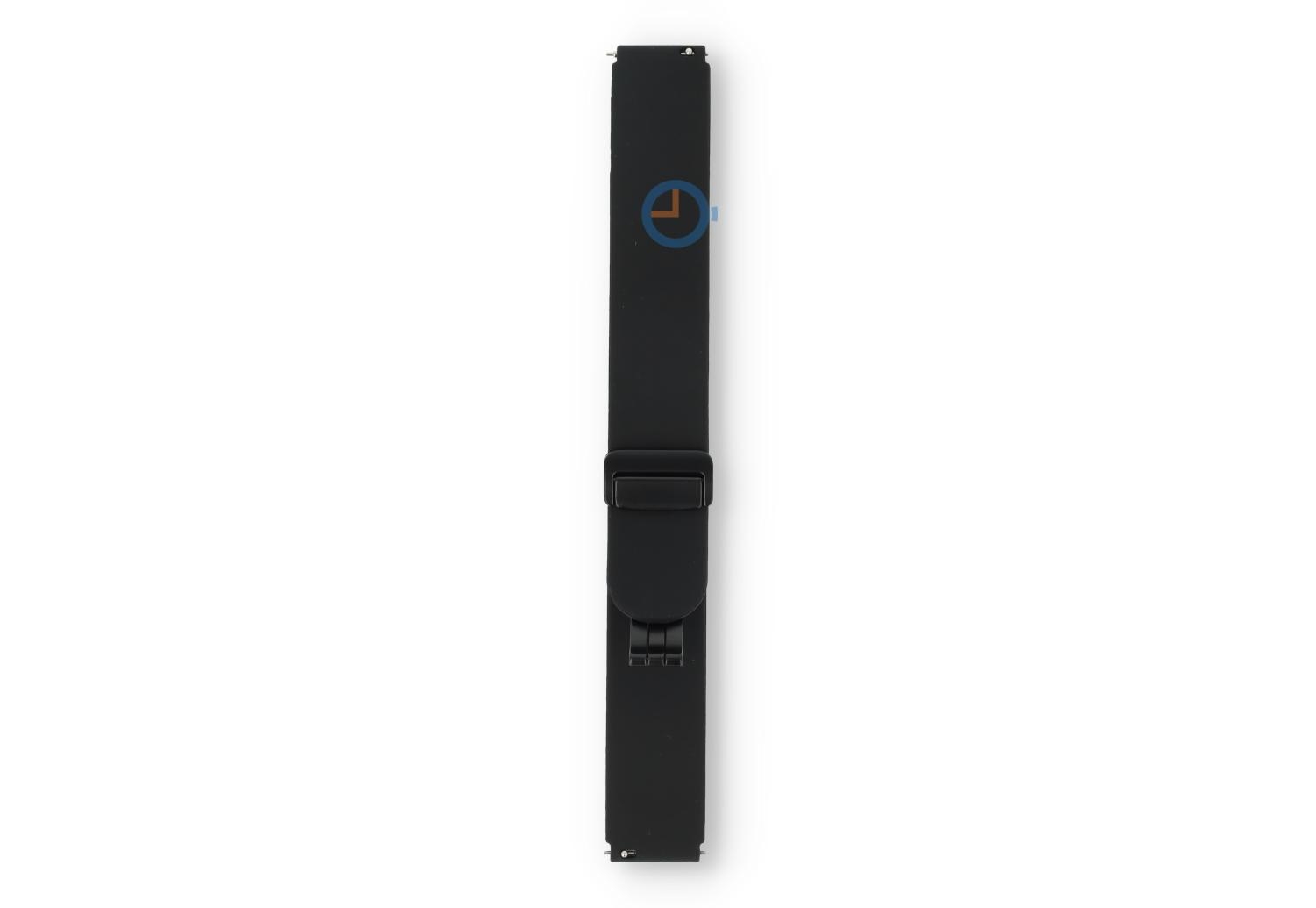 Snelwissel bandje - 16mm - Zwart. Find the perfect match en kies uit tal van nieuwe kleuren bandjes. Dit horlogebandje van 16mm, gemaakt van soepel en duurzaam siliconen, maakt je horloge direct sportproof op een stijlvolle manier. Perfect voor sportieve activiteiten en dagelijks gebruik, het bandje draag je op verschillende maten - ideaal bandje voor de dunne pols. Omdat het horlogebandje een veilige, magneetsluiting heeft, heb je geen tools meer nodig om de maat te bepalen. Niet alleen makkelijk, maar ook snel.