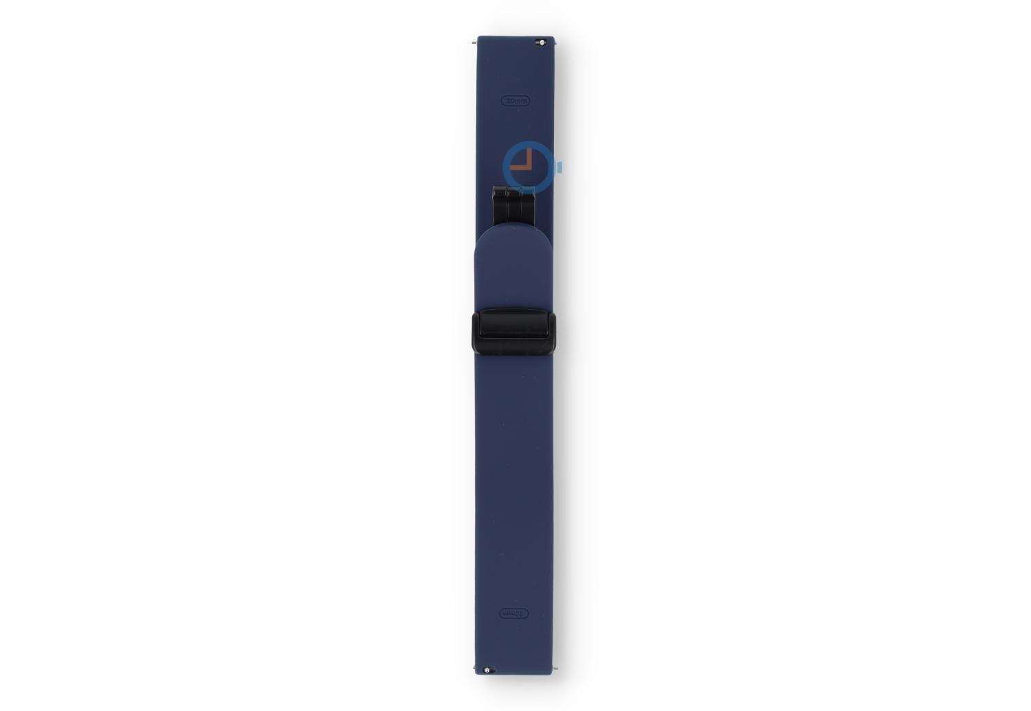 Bandje met snelwisselsysteem - 20mm - Donkerblauw. Find the perfect match en kies uit tal van nieuwe kleuren bandjes. Dit horlogebandje van 20mm, gemaakt van soepel en duurzaam siliconen, maakt je horloge direct sportproof op een stijlvolle manier. Perfect voor sportieve activiteiten en dagelijks gebruik, het bandje draag je op verschillende maten - ideaal bandje voor de dunne pols. Omdat het horlogebandje een veilige, magneetsluiting heeft, heb je geen tools meer nodig om de maat te bepalen. Niet alleen makkelijk, maar ook snel.