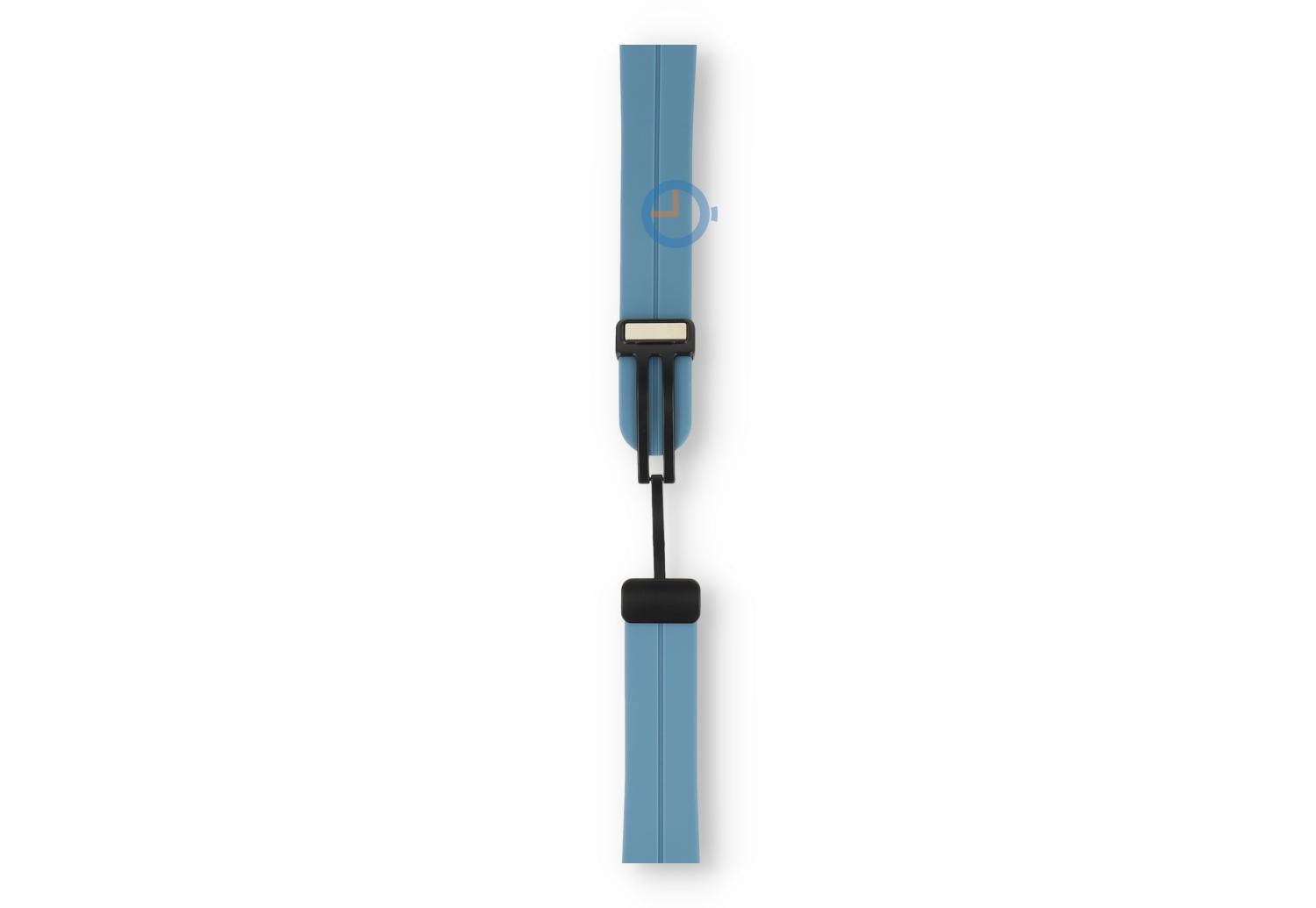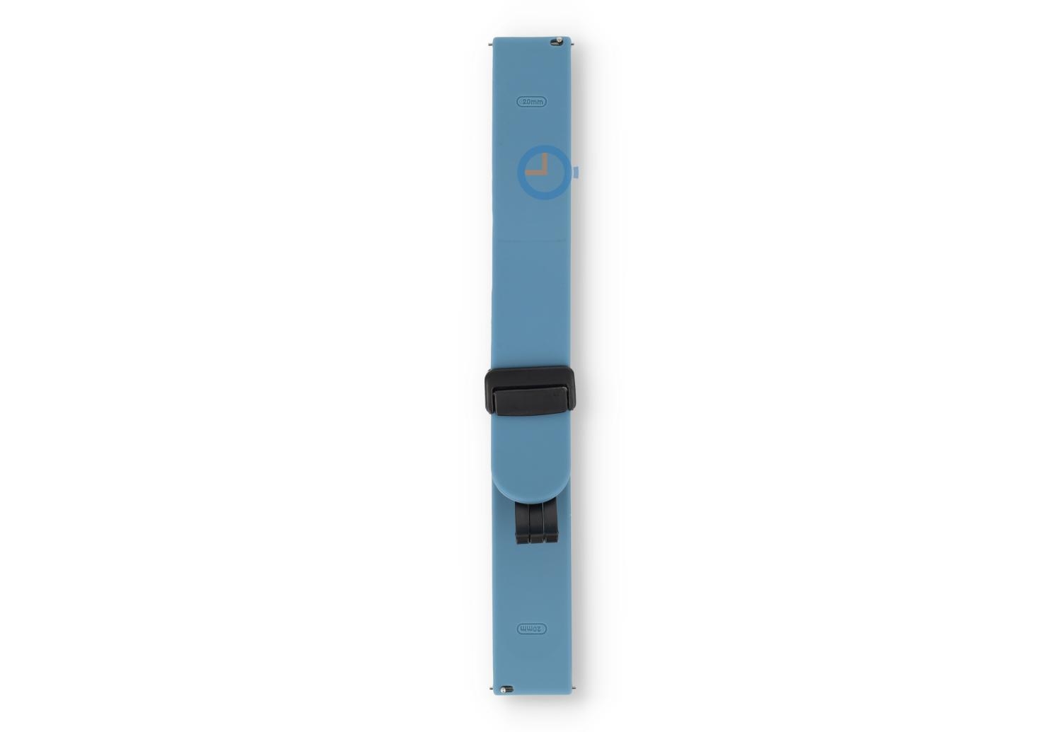 Bandje met snelwisselsysteem - 20mm - Grijsblauw. Find the perfect match en kies uit tal van nieuwe kleuren bandjes. Dit horlogebandje van 20mm, gemaakt van soepel en duurzaam siliconen, maakt je horloge direct sportproof op een stijlvolle manier. Perfect voor sportieve activiteiten en dagelijks gebruik, het bandje draag je op verschillende maten - ideaal bandje voor de dunne pols. Omdat het horlogebandje een veilige, magneetsluiting heeft, heb je geen tools meer nodig om de maat te bepalen. Niet alleen makkelijk, maar ook snel.