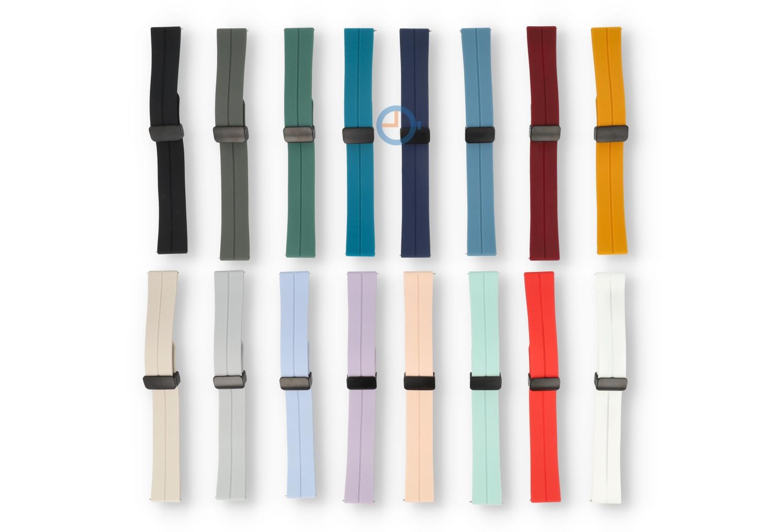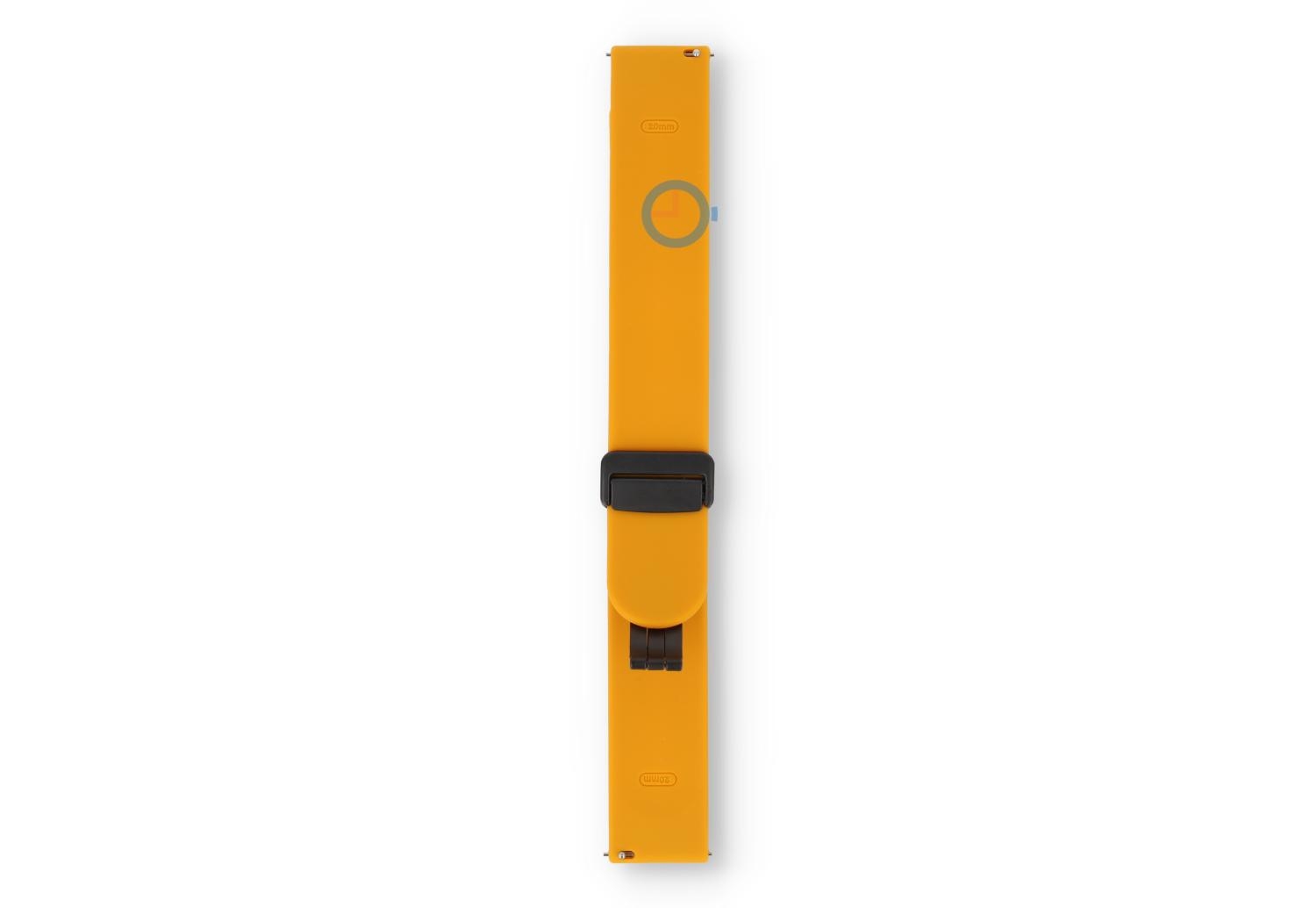 Bandje met snelwisselsysteem - 20mm - Okergeel. Find the perfect match en kies uit tal van nieuwe kleuren bandjes. Dit horlogebandje van 20mm, gemaakt van soepel en duurzaam siliconen, maakt je horloge direct sportproof op een stijlvolle manier. Perfect voor sportieve activiteiten en dagelijks gebruik, het bandje draag je op verschillende maten - ideaal bandje voor de dunne pols. Omdat het horlogebandje een veilige, magneetsluiting heeft, heb je geen tools meer nodig om de maat te bepalen. Niet alleen makkelijk, maar ook snel.