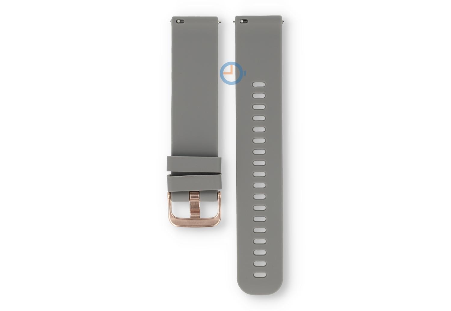 Siliconen sporthorloge band 20mm - lichtgrijs. Transformeer je sporthorloge of wearable met ons veelzijdige siliconen bandje. Dit 20mm brede sportbandje, gemaakt van soepel en duurzaam siliconen, maakt je horloge direct sportproof op een stijlvolle manier. Perfect voor sportieve activiteiten en dagelijks gebruik, het bandje draag je op 16 verschillende maten - ideaal voor de smalle pols.