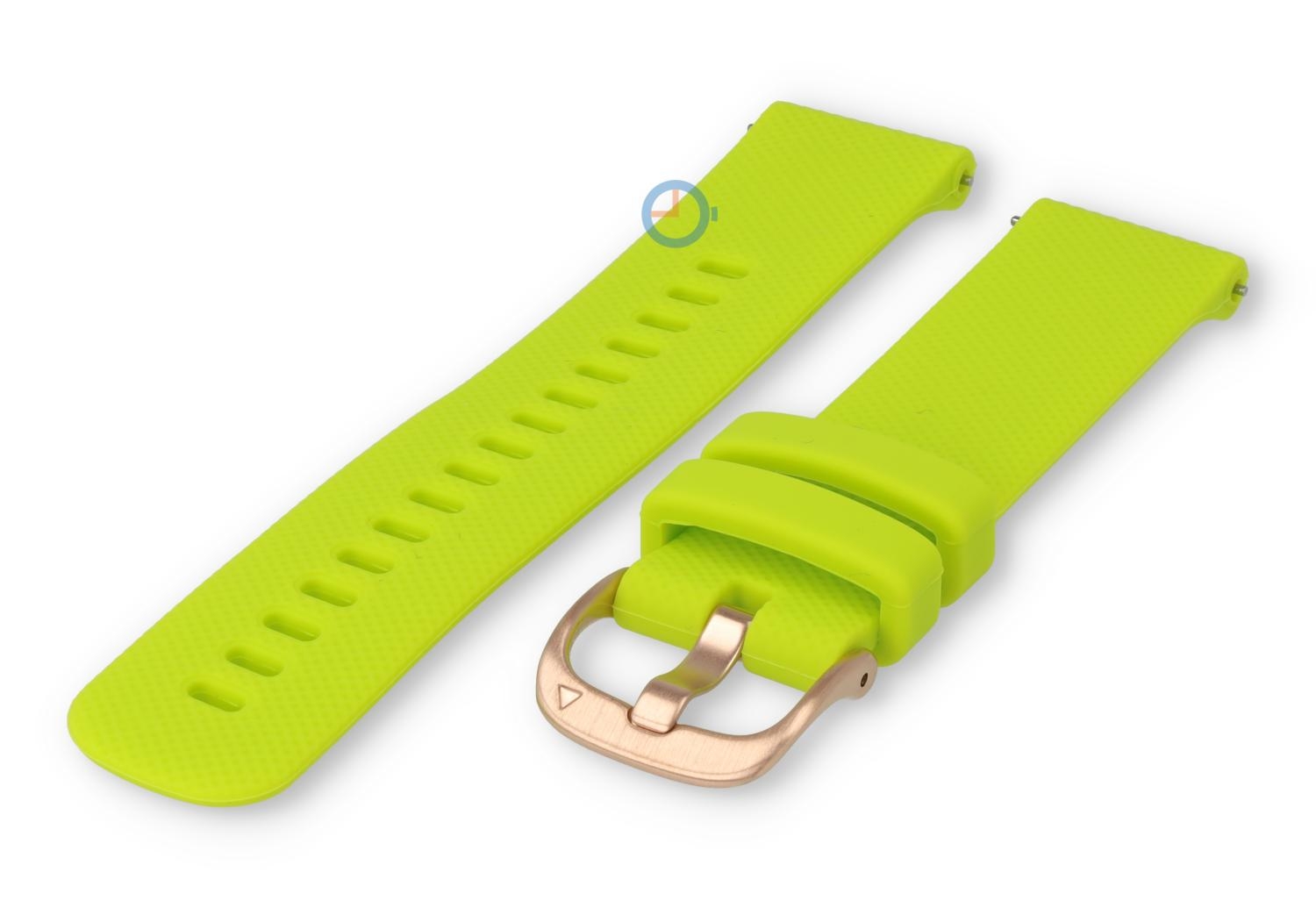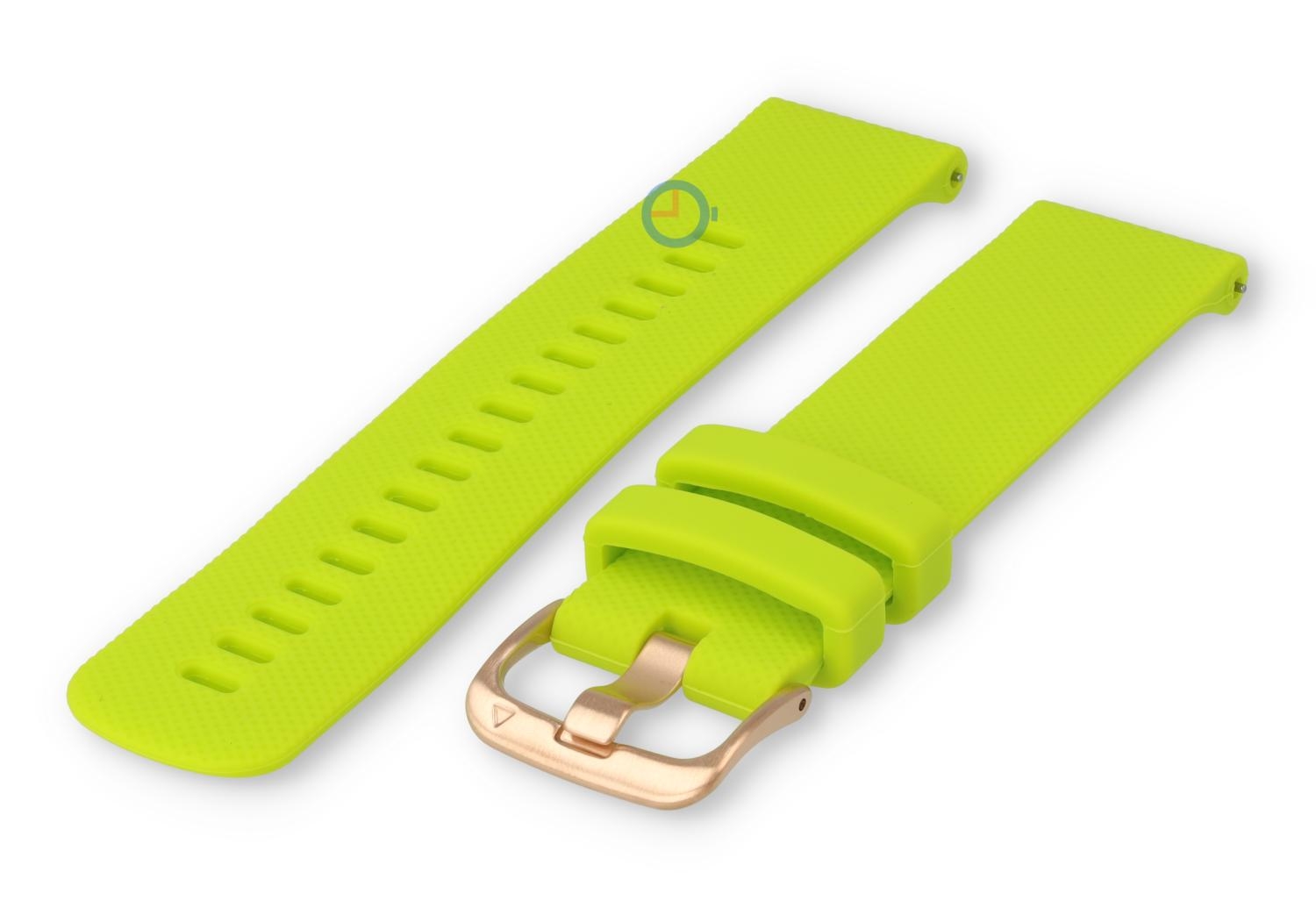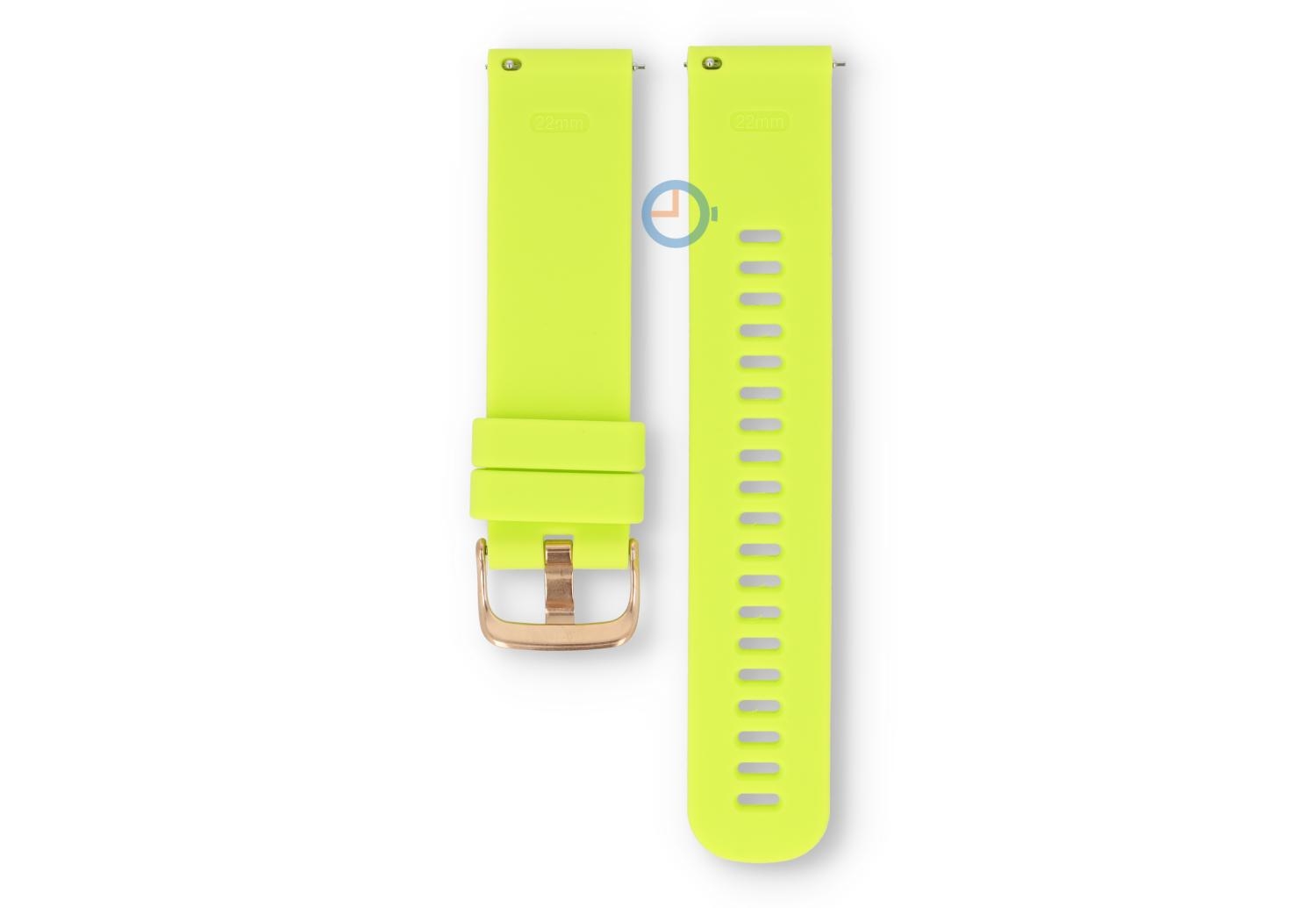 Siliconen sporthorloge band 22mm - neon groen. Transformeer je sporthorloge of wearable met ons veelzijdige siliconen bandje. Dit 22mm brede sportbandje, gemaakt van soepel en duurzaam siliconen, maakt je horloge direct sportproof op een stijlvolle manier. Perfect voor sportieve activiteiten en dagelijks gebruik, het bandje draag je op 16 verschillende maten - ideaal voor de smalle pols.