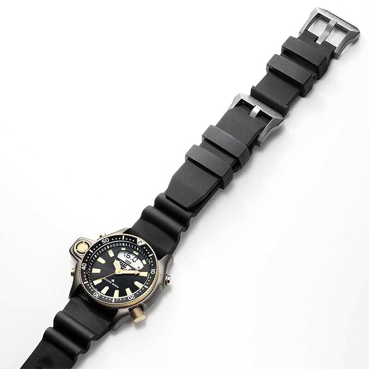 Dit zwarte siliconen verlengstuk (20mm) is speciaal ontworpen voor duikhorloges, zoals modellen van Citizen Promaster, Seiko en andere populaire duikhorloges. Het verlengdeel geeft je horlogebandje extra lengte, zodat je het horloge ook over een wetsuit, droogpak of dikkere kleding kunt dragen.