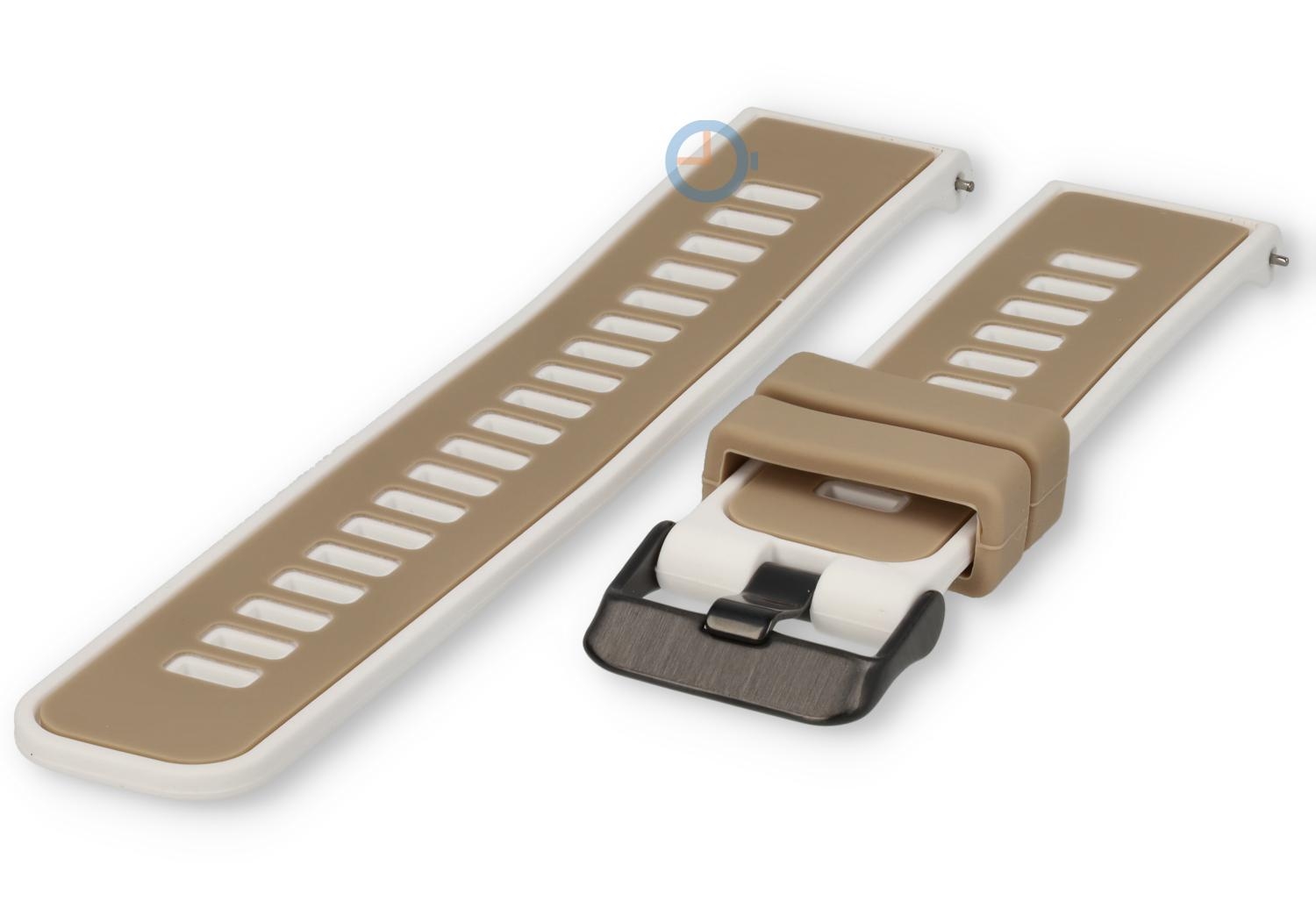 Bestel deze horlogeband voor een perfecte pasvorm en een mooie uitstraling. Het materiaal is gekeurd als veilig (RoHS-gecertificeerd) en kan tegen water en zweet. Dit betekent dat je het kunt dragen tijdens het sporten. De band is flexibel en past perfect om je pols. Je bevestigt het bandje met de geïntegreerde Quick Switch pinnen en sluit hem makkelijk met een stevige gesp die ervoor zorgt dat de band goed vast blijft zitten.