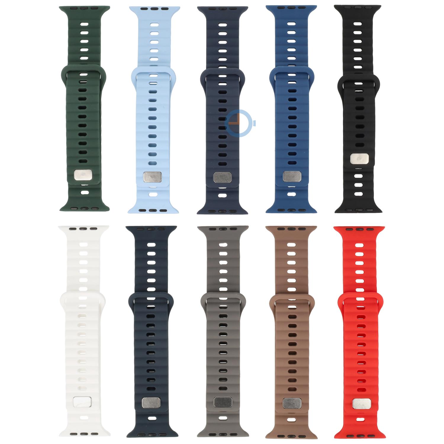 Soft Blue Apple Watch (41mm) horlogeband van flexibel siliconen. Is de prijs van een originele Apple horlogeband buiten je budget of wil je het gewoon niet betalen? Ontdek onze betaalbare oplossing. Met dezelfde nauwsluitende pasvorm en lange levensduur als het origineel, biedt ons Apple horlogebandje een aantrekkelijk alternatief.