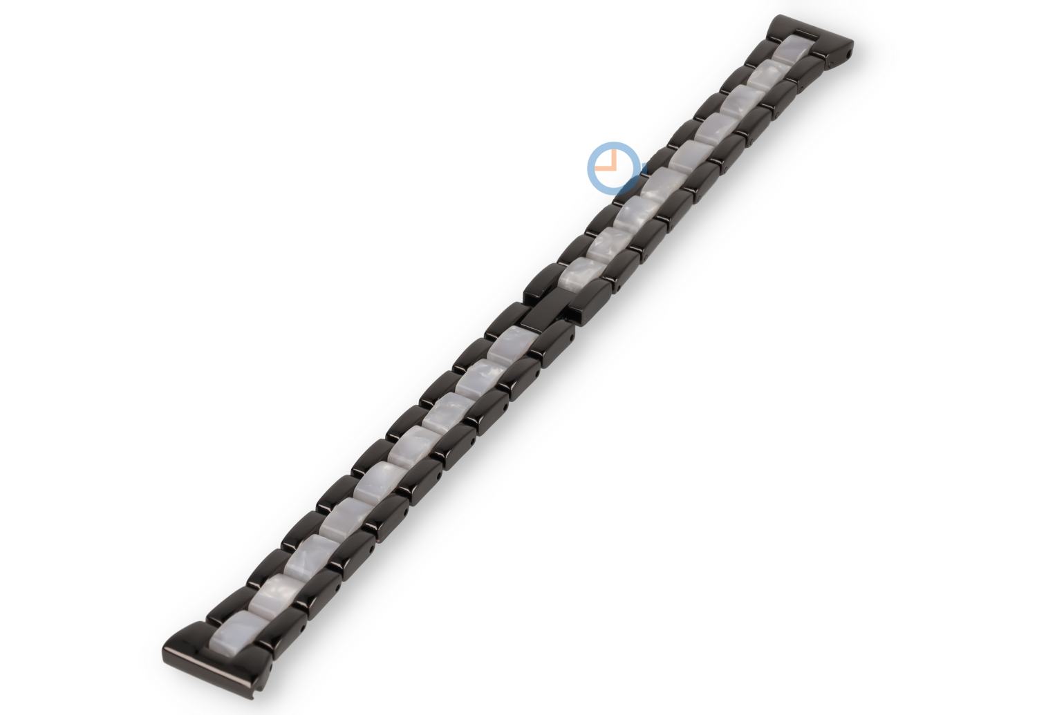 Artikel D005: universeel stalen horlogebandje in DKNY-style - 14mm - black/white - lengte: 170mm - De bandbreedte bij de rechte aanzet is 14mm en je kunt het bandje bevestigen met quick-switch pinnen (let op: alleen aan horloges met een rechte aanzet van 14mm). De lengte is maximaal 170mm en kun je inkorten met maarliefst 14 schakels. Deze band wordt gesluiten met een stevige armband sluiting die je makkelijk open en dicht klikt.