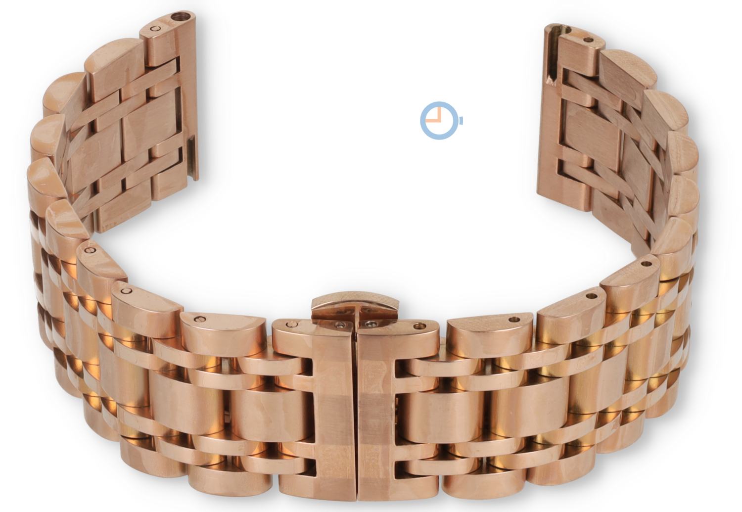 Op zoek naar een stijlvolle horlogeband die direct een luxe uitstraling geeft aan je horloge? Deze ros?ouden horlogeband van roestvrij staal is 22mm breed en heeft een terugloop naar 20mm. Dat geeft de band een mooie klassieke look.De schakels zijn uitgevoerd in een elegant patroon van mat en glans, daardoor valt 'ie extra op.