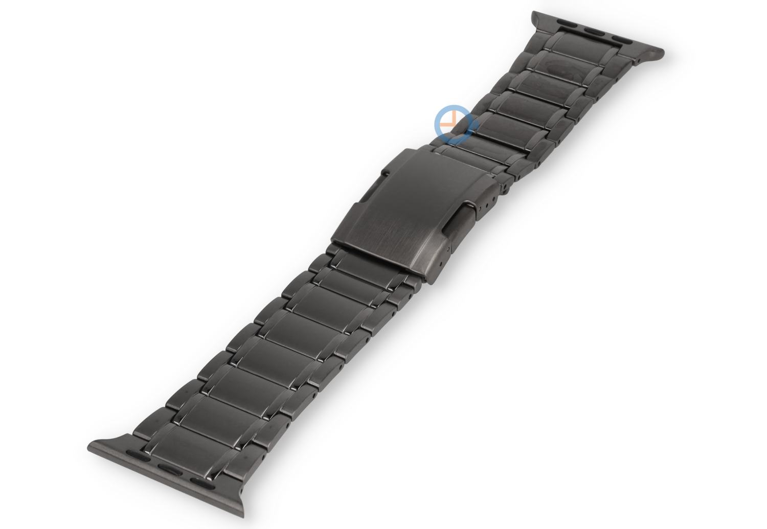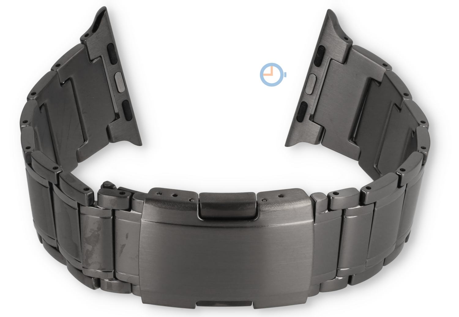 Titanium horlogeband voor Apple Watch 44 t/m 49mm | mat spacegrijs met glansdetail | Deze titanium horlogeband is speciaal ontwikkeld voor de grotere Apple Watch modellen (44, 45, 46 en 49mm). Gemaakt van lichtgewicht titanium met stalen pinnen. De matte schakels worden subtiel geaccentueerd door een gepolijste lijn aan weerszijden.