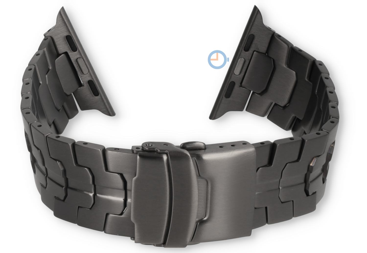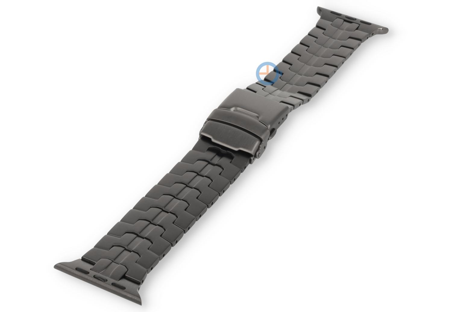 Platte horlogeband voor Apple Watch 42/44/45/49 - de horlogeband is gemaakt titanium gecombineerd met staal. Je geeft je Apple watch hiermee echt een luxe uitstraling. De schakels en sluiting zijn van titanium, de onderdelen zoals pinnen zijn van staal. Het bandje is daardoor superlicht in gewicht.
