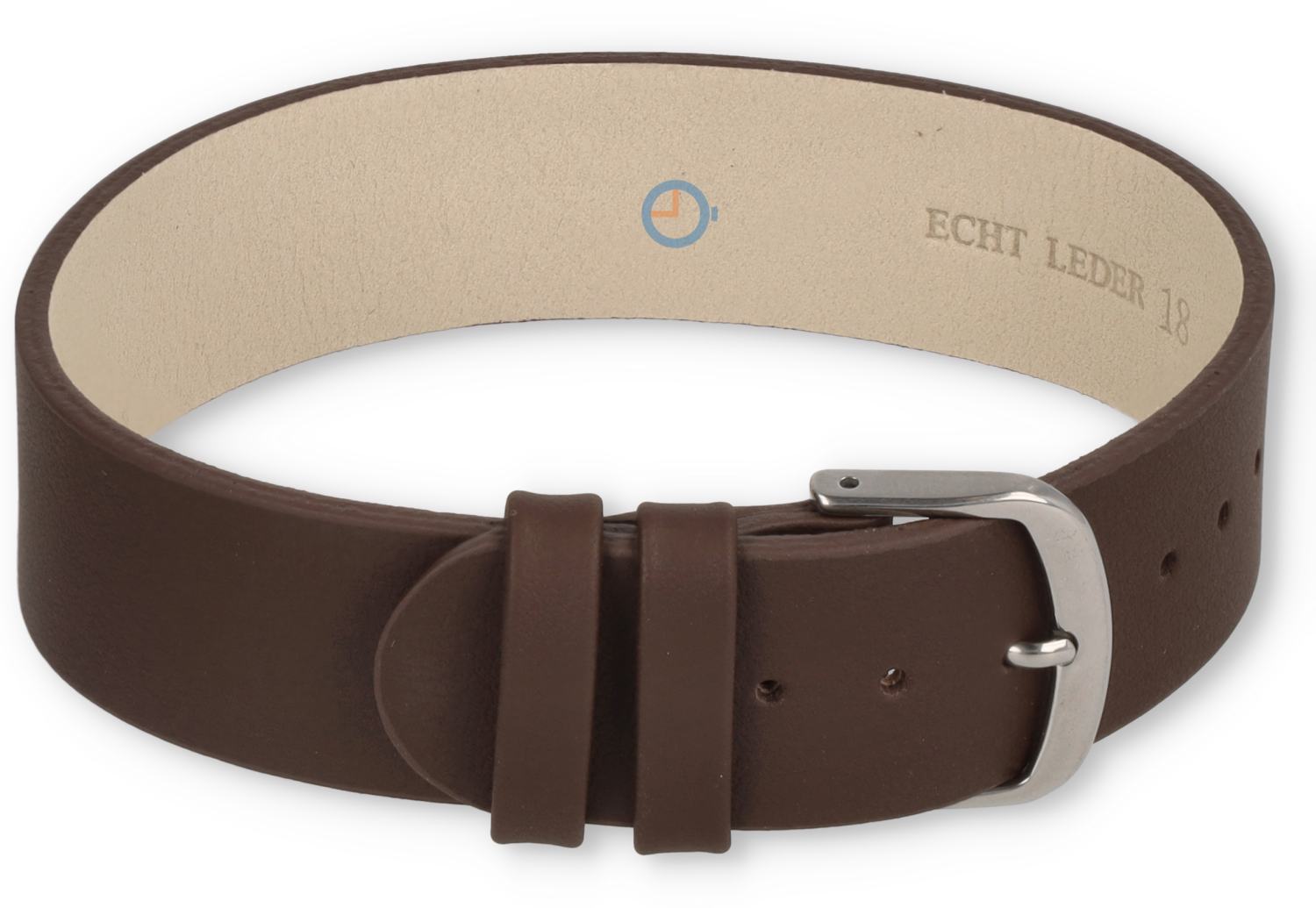 Dit leren horlogebandje bestaat uit één geheel. De band schuift dus in ?n keer door de springbars, wat niet alleen makkelijk is in gebruik, maar ook extra veiligheid biedt: als een springbar loslaat, blijft je horloge nog steeds om je pols.