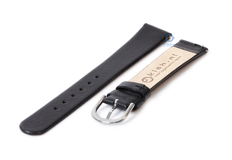 Universele Danish Design horlogeband - 20mm - glad leer - kleur: zwart. Het leer is effen gekleurd en heeft geen stiksels. Daarmee behoud je de minimalistische look van Danish Design. Deze glad leren band is 20mm breed en heeft een rechte, universele aanzet. Je plaatst dit horloge met pushpinnen eenvoudig zelf aan je horloge.