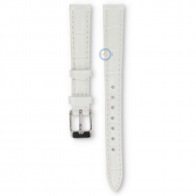 Universele 12mm wit leren horlogeband - Lorus. 12mm, wit leren horlogebandje met crocoprint en tone-in-tone stiksels. Je geeft je horloge hiermee een nieuwe boost. Levering is inclusief zilverkleurige sluiting. .