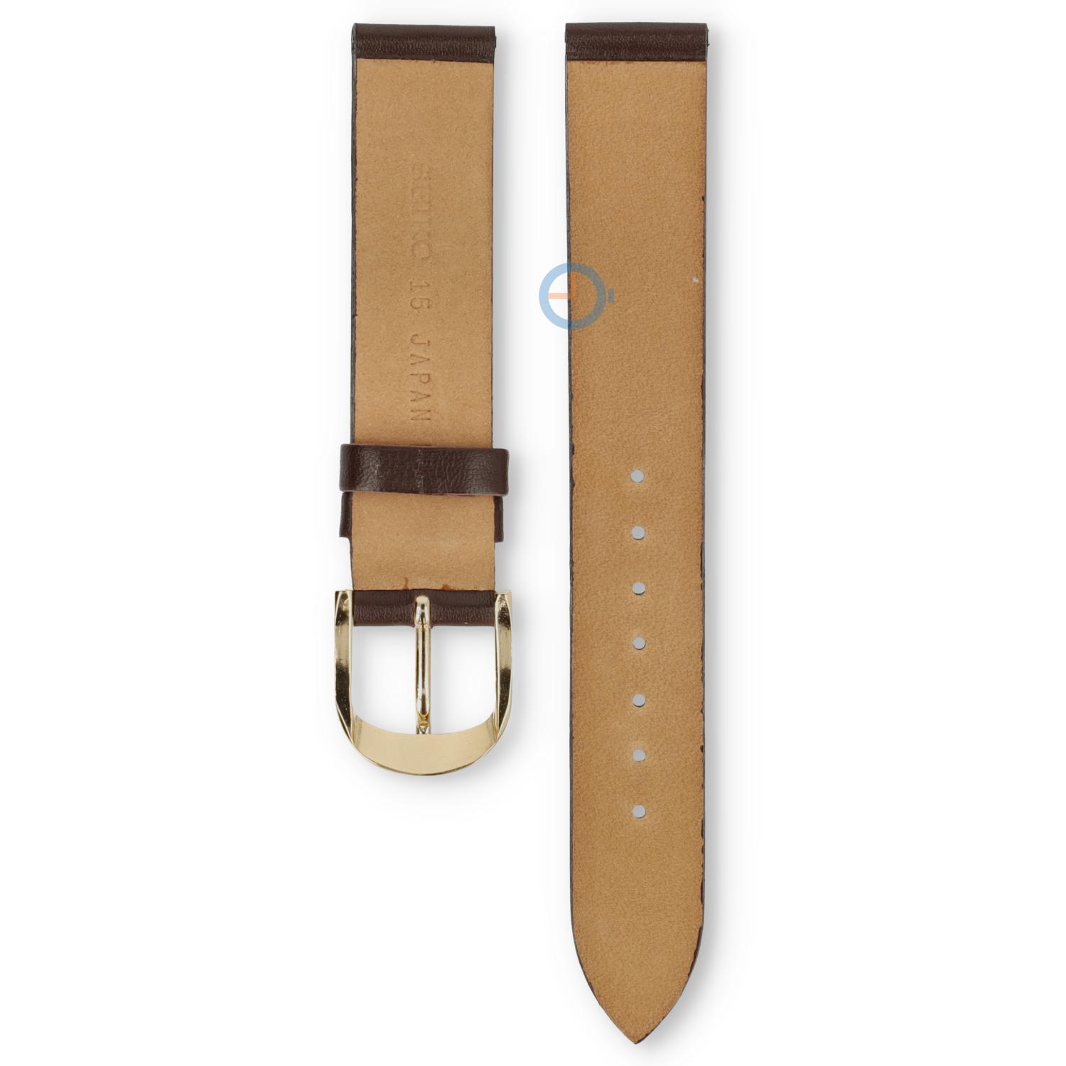 Universele 15mm bruin leren horlogeband - Seiko. Oneven maat horlogeband: 15mm glad leren horlogebandje zonder stiksels..
