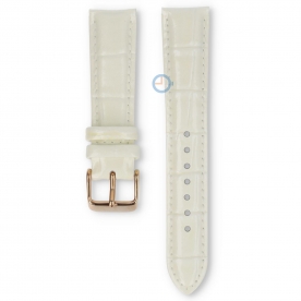 Universele 18mm wit leren horlogeband - Lorus. Glanzende, wit leren horlogeband met crocoprint en ros?oudkleurige gesp..