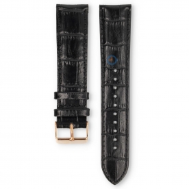 Universele 22mm zwart leren horlogeband - Lorus. Zwart leren horlogeband met klassieke krokoprint. De gesp van deze horlogeband is ros?oudkleurig en wordt meegeleverd..