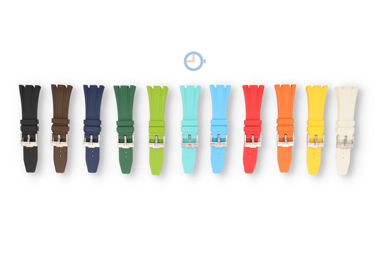 Het bandje heeft een unieke, originele aanzet (exact gelijk aan het origineel) waardoor deze enkel aan het Royal Oak Offshore horloge van Audemars Piguet past. Het horlogebandje voor Audemars Piguet wordt geleverd inclusief gespsluiting en bevestigingspinnen.