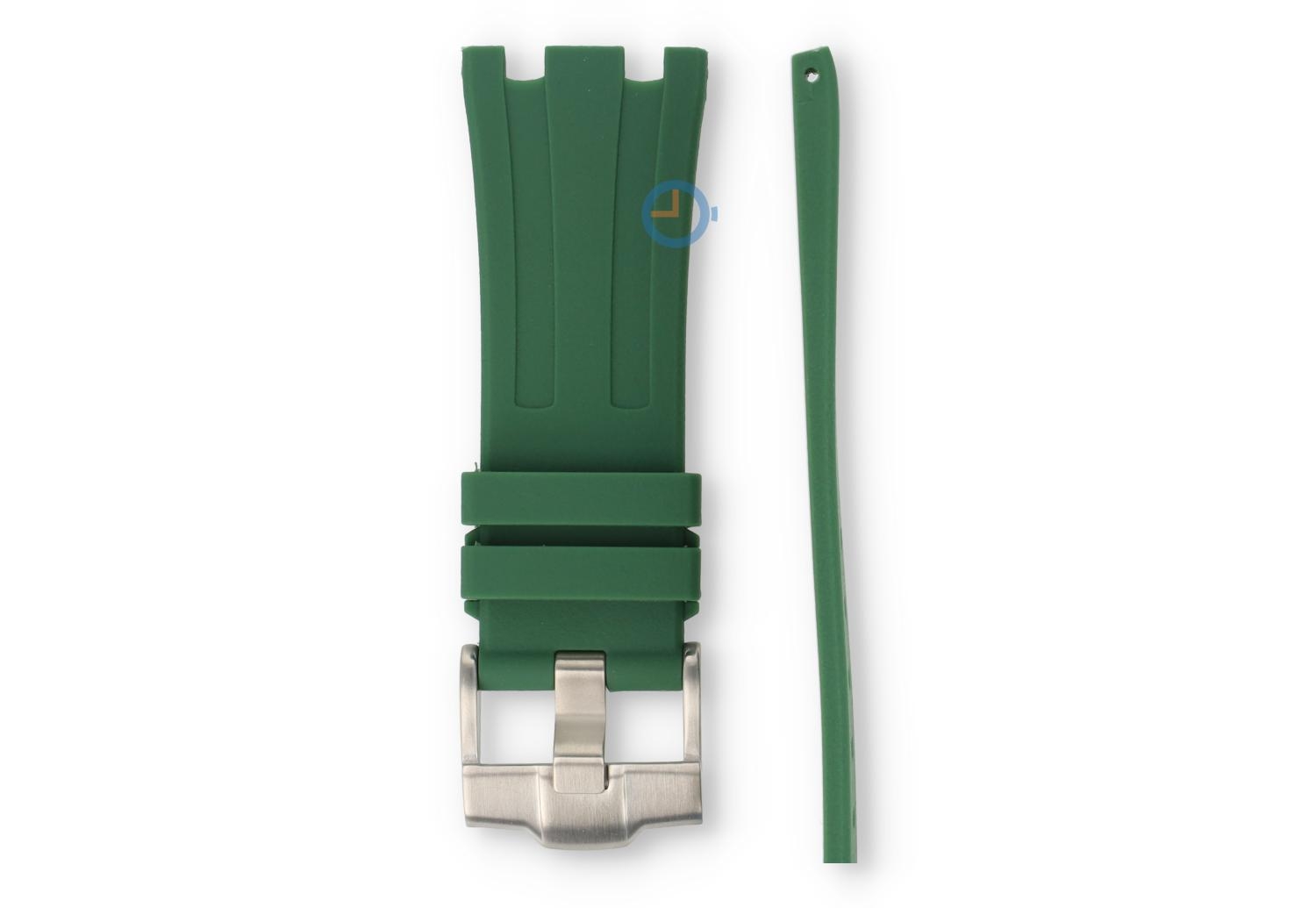 Universele band 28mm Audemars Piguet Royal Oak - donkergroen. Een originele band van Audemars Piguet is vaak onnodig duur en daarom biedt Horlogeband.com een betaalbaar alternatief. We kunnen inmiddels wel stellen dat wij specialist zijn op gebied van horlogebandjes en garanderen daarom 100% kwaliteit en een niet goed, geld terug garantie.